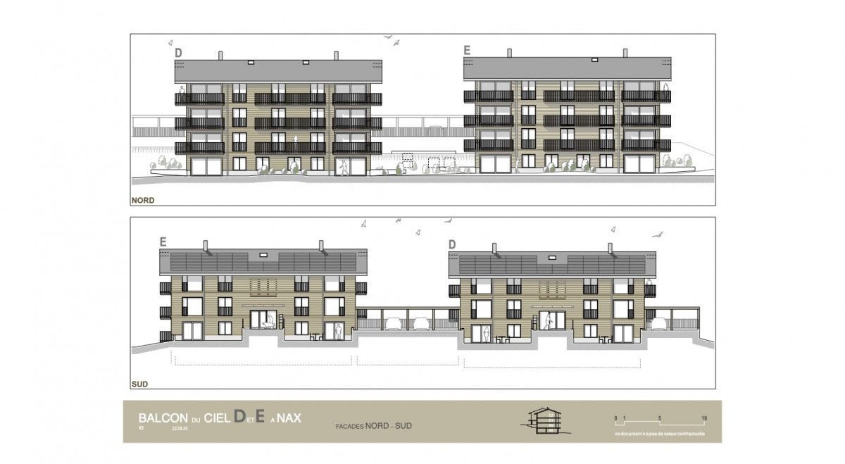 Nichée dans la commune de Nax Mont-Noble, à seulement 15 minutes de la plaine, cette nouvelle promotion, située au lieu-dit « Cordamou », se compose de deux immeubles contemporains (D et E) reliés au rez inférieur. Ce cadre unique offre une tranquillité absolue et une vue imprenable sur la vallée du Rhône, le village de Nax, et les majestueuses Alpes Bernoises.