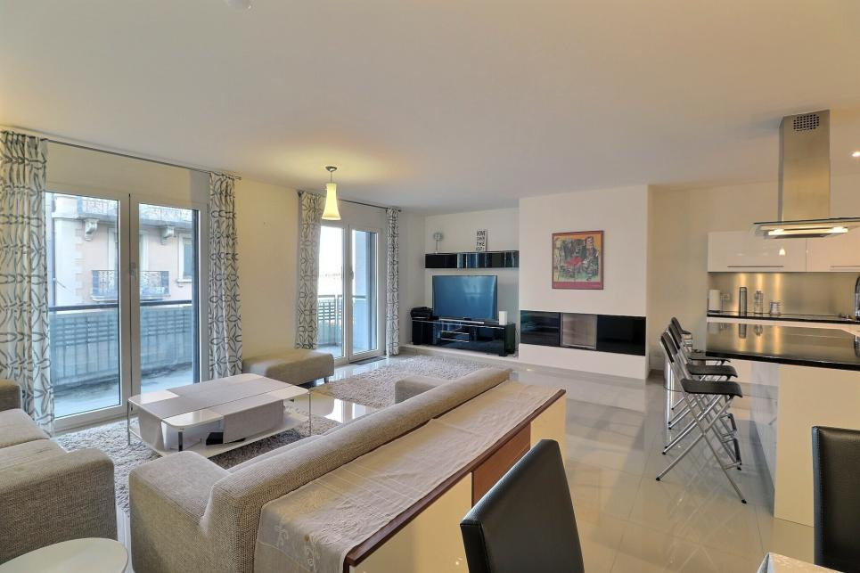 Espaces très généreux et finitions contemporaines pour ce grand appartement de 5,5 pièces d'environ 169 m2 + 20 m2 de balcon au 2ème étage d'un immeuble au centre de Montreux avec toutes les commodités de la ville et le bord du lac Léman à deux pas.