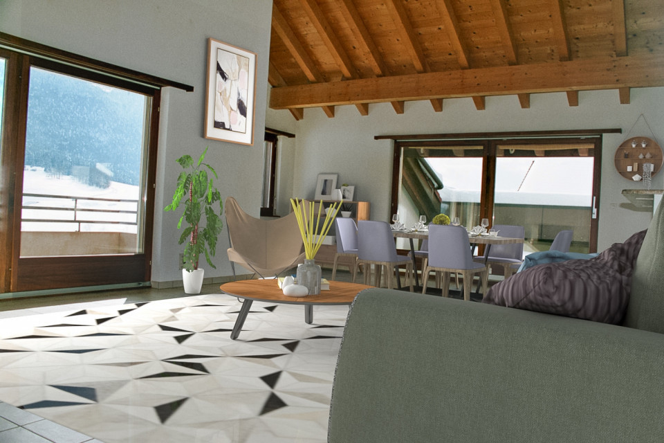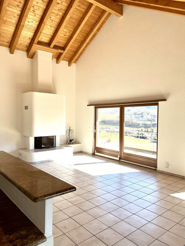 Attique de 5.5 pièces d'une surface de 165 m2 + terrasse ouest de 30 m2 et balcon sud de 10 m2, au 4e étage d'un petit immeuble résidentiel.