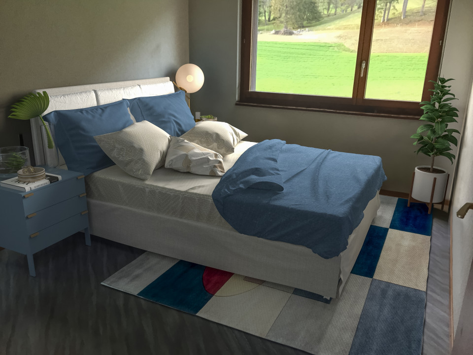 3 chambres + 1 pièce de ménage équipée avec lavabo et colonne de lavage.