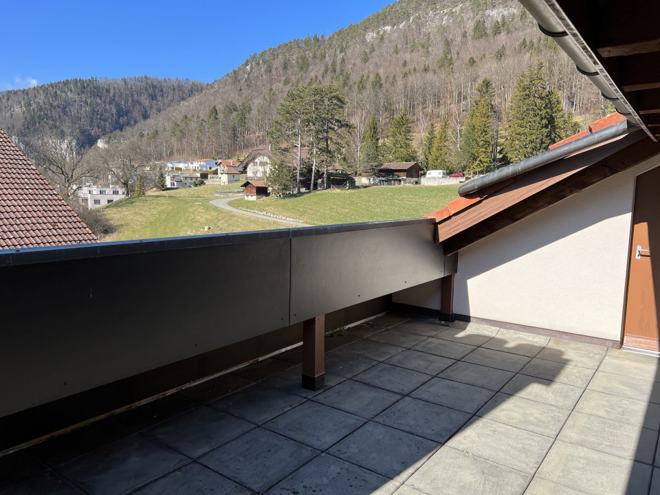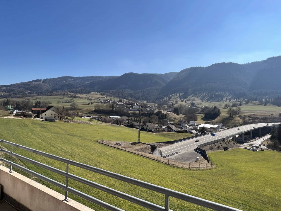 Autoroute Transjurane N16 en contrebas, accès en 3 min. à la jonction Moutier-Nord.