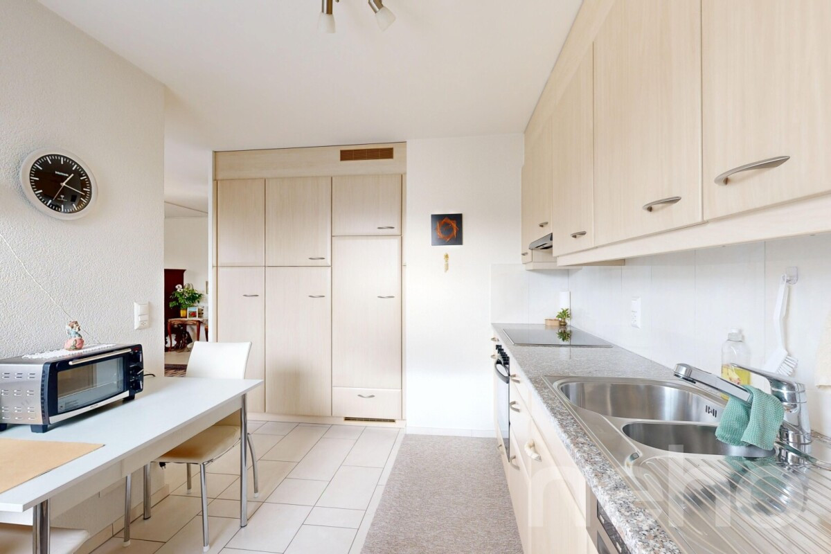 Diese attraktive Attikawohnung am Lindenweg 6b in Münsingen bietet auf 95 m² Wohnfläche ein modernes, warmes Wohngefühl, das ideal zu Familien und Paaren passt. Dank der ruhigen Lage im familienfreundlichen Quartier und der Nähe zur Natur entsteht ein harmonisches Umfeld, während Bern nur wenige Minuten entfernt liegt.Beim Betreten der Wohnung empfängt Sie ein einladender Eingangsbereich mit praktischer Garderobe. Von hier aus gelangen Sie direkt in die gut ausgestattete Küche mit Glaskeramikkochfeld, Backofen und Geschirrspüler.Im Anschluss öffnet sich der helle Wohn und Essbereich, der durch seine Grosszügigkeit und die warmen Materialien besticht. Bucheparkett in den Schlafräumen sowie Fliesen in Küche, Nasszonen und Wohnbereich sorgen für eine hochwertige, gepflegte Atmosphäre. Die Kombination aus Bodenheizung und viel Tageslicht schafft ein besonders angenehmes Wohnklima.Der private Bereich der Wohnung bietet zwei gut geschnittene Kinderzimmer, die flexibel als Arbeits, Spiel oder Gästezimmer genutzt werden können. Ein Badezimmer mit Dusche befindet sich direkt daneben und kann auch als Gäste WC genutzt werden. Das Elternschlafzimmer liegt ruhig und verfügt über direkten Zugang zu einem eigenen Badezimmer mit Wanne und Doppelwaschbecken. Den krönenden Abschluss bildet die rund 41 m² grosse Terrasse, die viel Platz für Lounge, Essbereich, Pflanzen und Erholung bietet. Sie ist sonnig ausgerichtet und eröffnet eine wunderschöne Sicht ins Grüne und auf die Berge. Das angrenzende Reduit schafft zusätzlichen praktischen Stauraum im Aussenbereich.Zur Wohnung gehören zudem ein privater Waschraum mit Waschmaschine und Tumbler sowie ein grosser Keller und ein Einstellhallenplatz. Ein Lift führt bequem direkt ins Wohngeschoss.Diese Kombination aus durchdachtem Grundriss, gepflegtem Zustand, grosser Terrasse und schöner Aussicht macht die Attikawohnung zu einem besonderen Zuhause für Menschen, die Ruhe, Qualität und ein freundliches Wohnumfeld suchen.