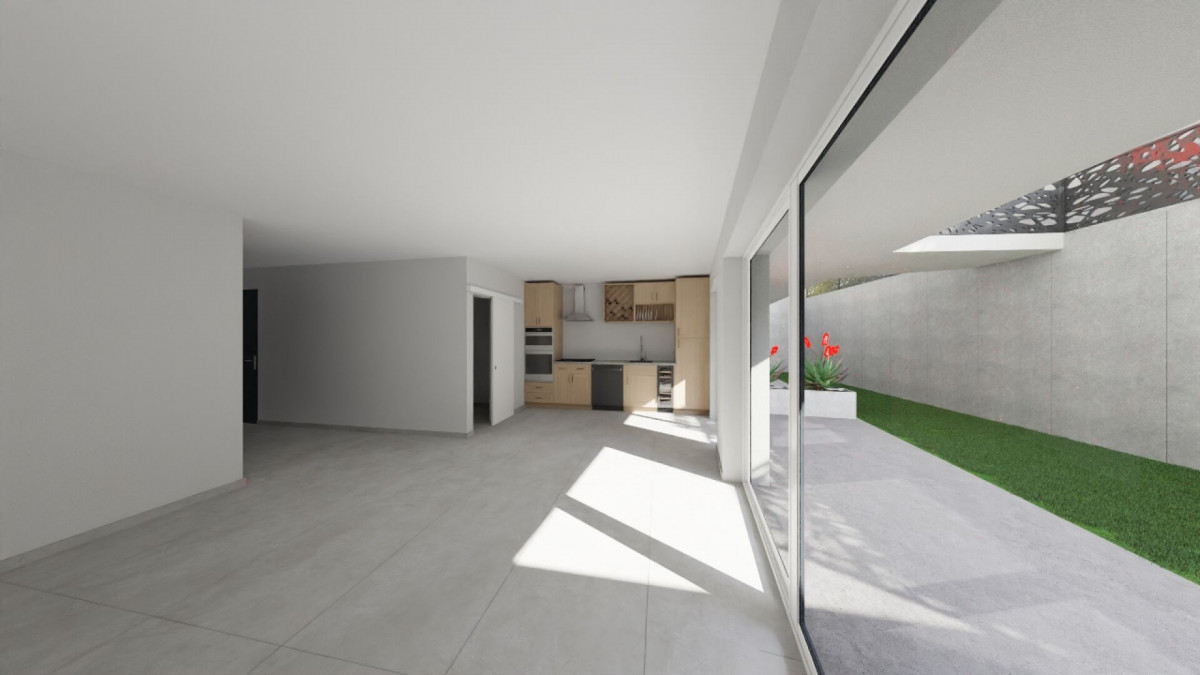 L'espace de vie se compose d'une cuisine ouverte sur un séjour spacieux et lumineux, prolongé par une agréable terrasse avec un petit jardin privatif, parfait pour profiter d'un moment de détente en extérieur.