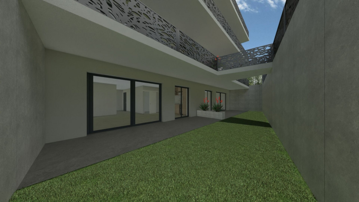 Le troisième étage répète le schéma du deuxième étage avec deux appartements de 2,5 pièces, chacun avec balcon et terrasse, ainsi qu'un studio. Cependant, la particularité réside dans le fait que ces appartements bénéficient également d'un jardin, offrant un espace extérieur privé supplémentaire.