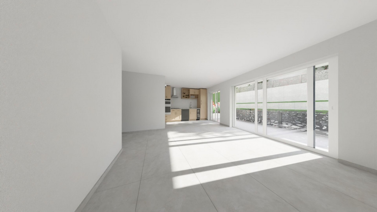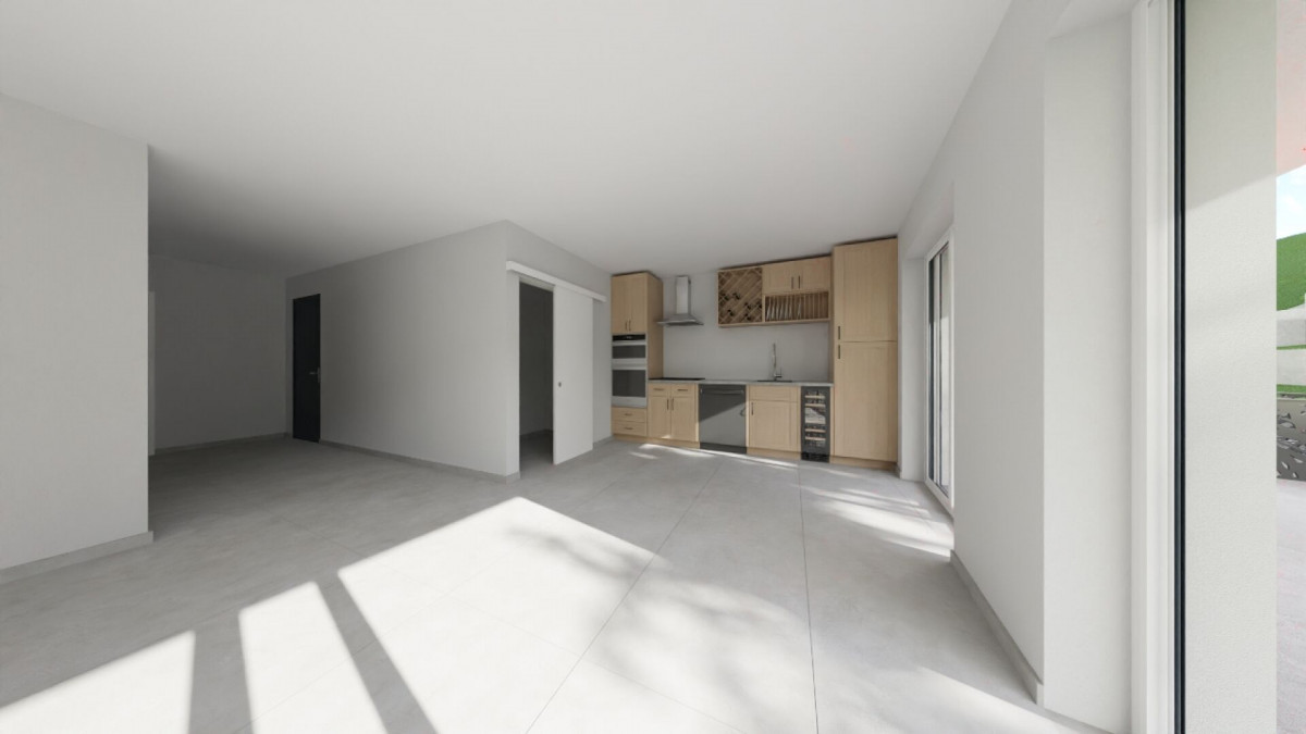 L'espace de vie se compose d'une cuisine ouverte sur un séjour spacieux et lumineux, prolongé par une agréable terrasse avec un jardin privatif, parfait pour profiter d'un moment de détente en extérieur.