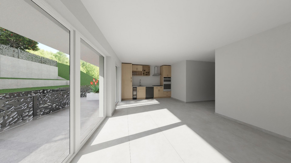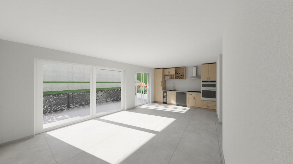 L'espace de vie se compose d'une cuisine ouverte sur un séjour spacieux et lumineux, prolongé par une agréable terrasse avec un jardin privatif, parfait pour profiter d'un moment de détente en extérieur.