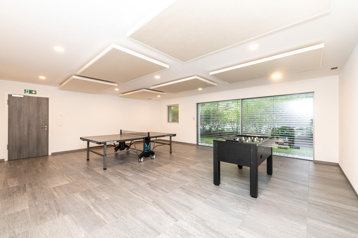 Les copropriétaires profitent d'installations haut de gamme au rez inférieur de l'immeuble : espace wellness avec sauna et hammam, salle de fitness entièrement équipée, salle de jeux conviviale et salle de réunion idéale pour des événements privés.