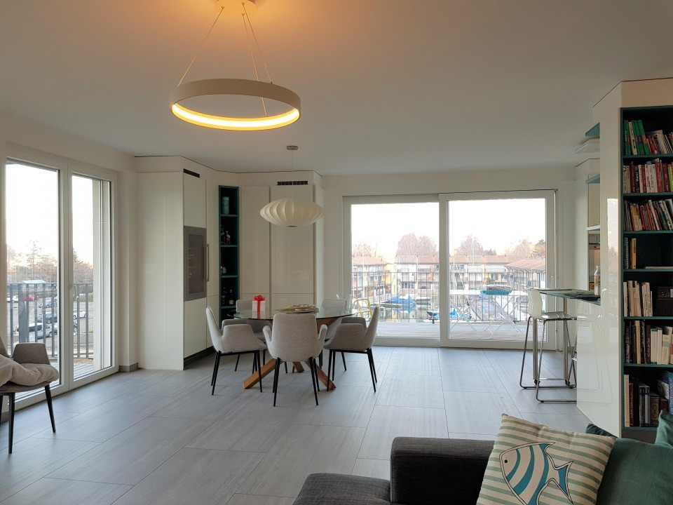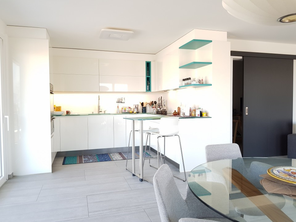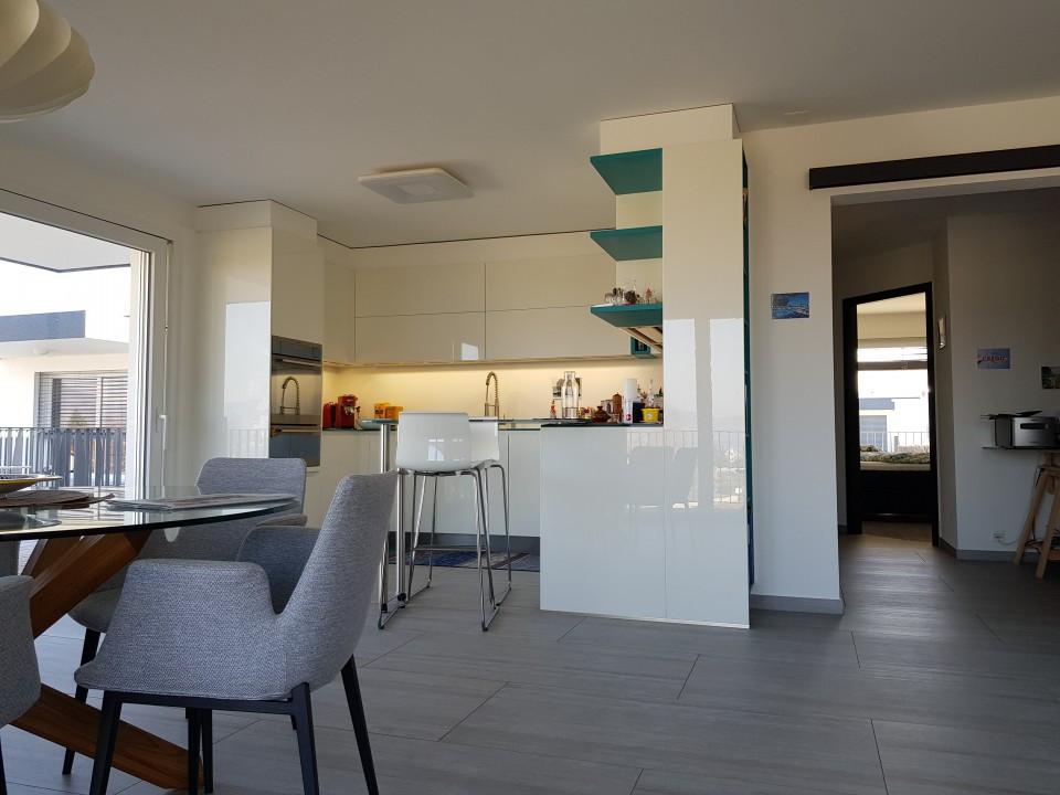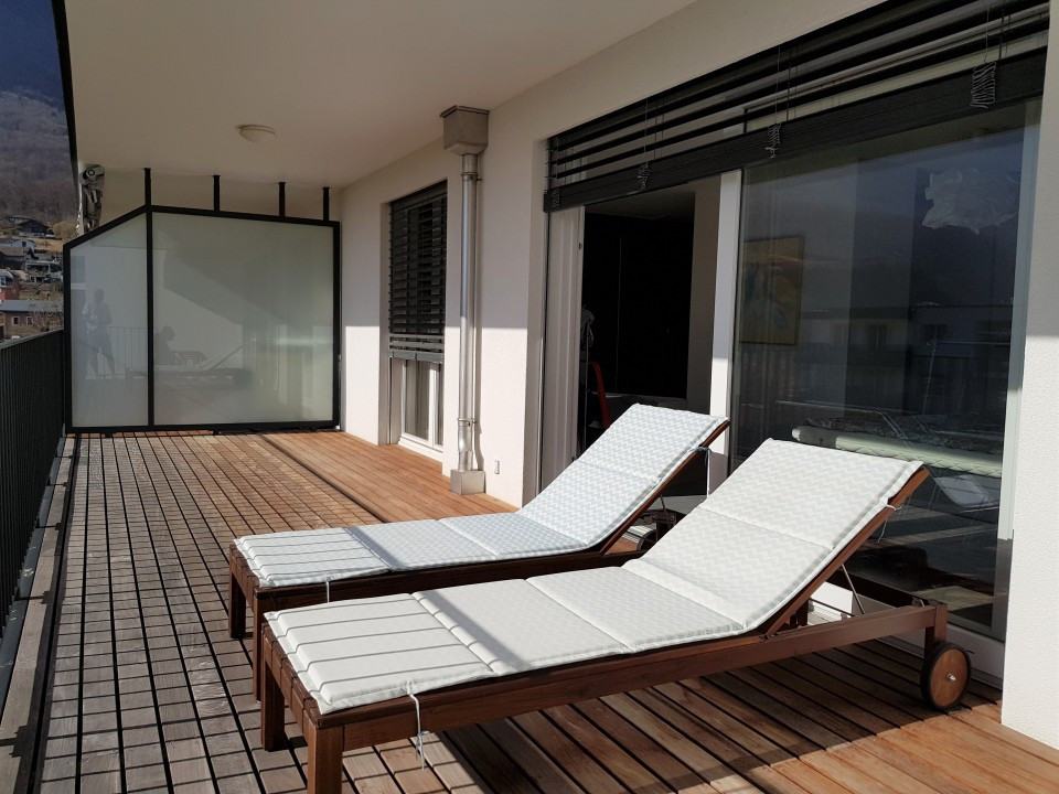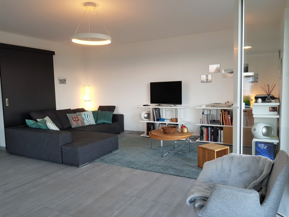 Un séjour, salle-à-manger et cuisine d'env. 46 m2 avec deux terrasses, orientation sud et ouest, l'une avec la vue sur le lac et le port du Bouveret, l'autre sur la Marina