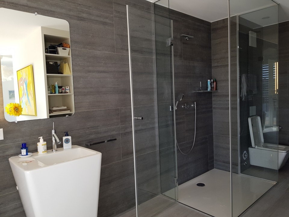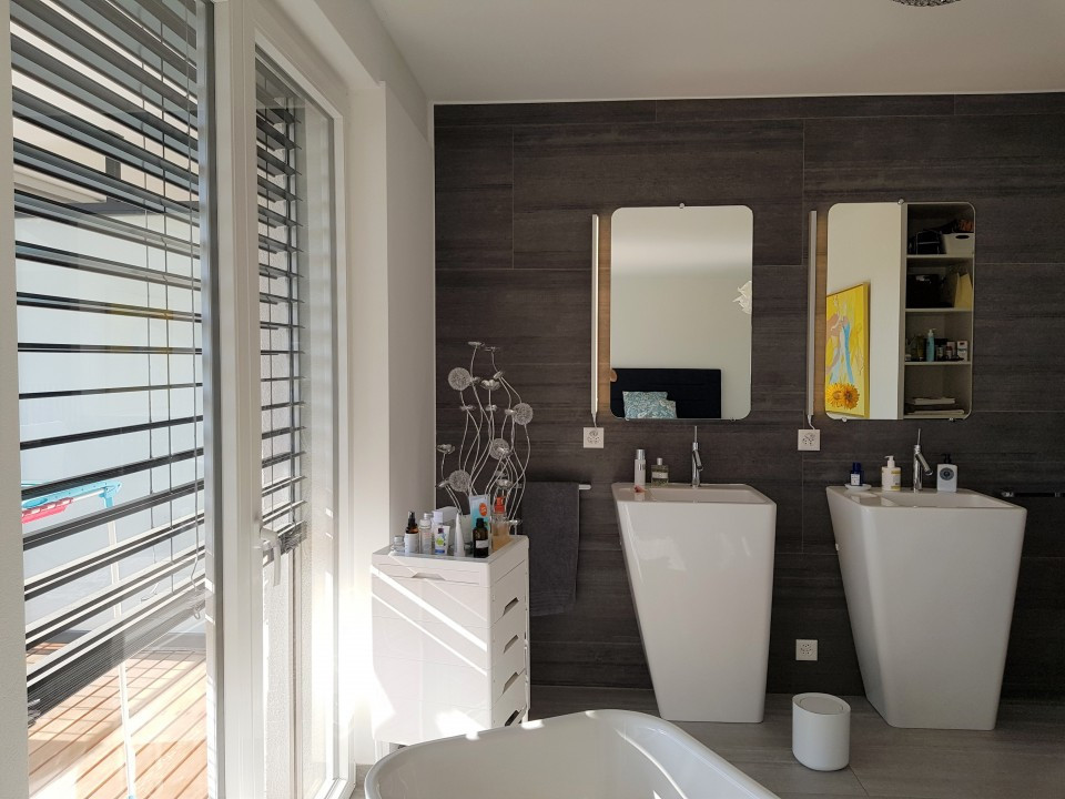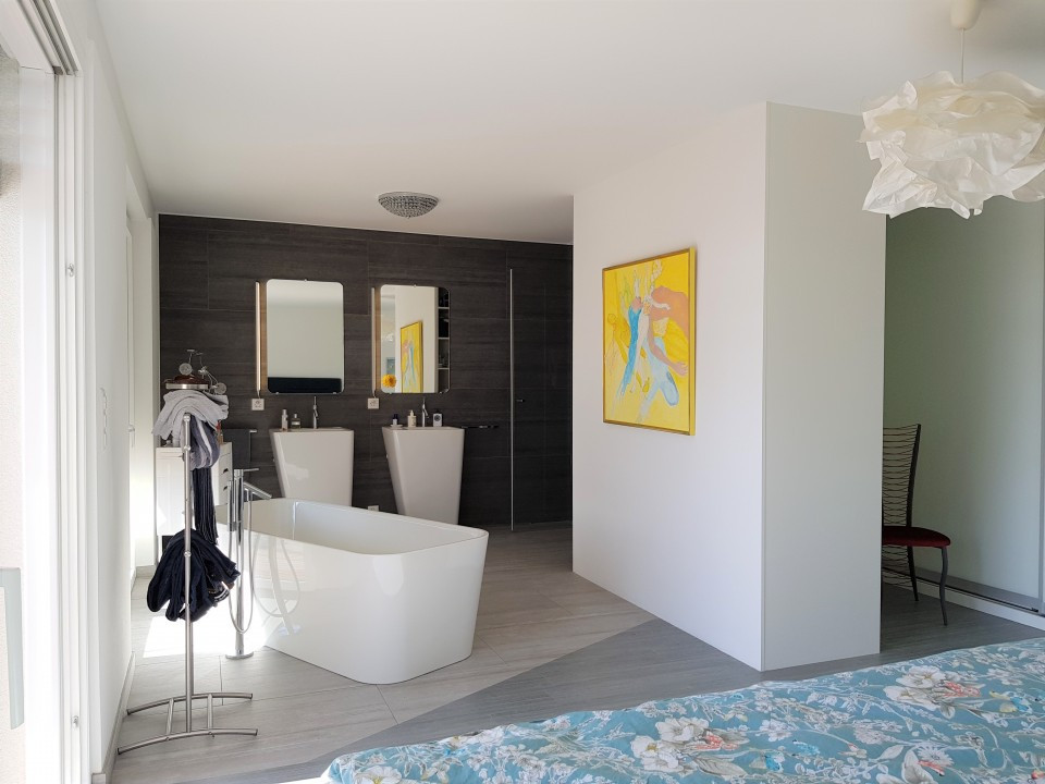baignoire ilôt, double-lavabos, douche italienne et wc, magnifique terrasse de 21,59 m2, dressing