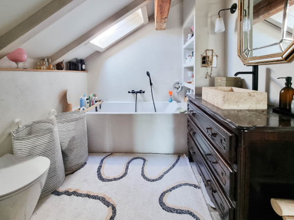 L’appartement se trouve dans un bâtiment du XIXᵉ siècle, entièrement rénové en 2000, et a bénéficié en 2022 d’une rénovation complète réalisée avec goût et élégance. L’alliance subtile entre matériaux contemporains et éléments d’époque confère à ce bien un cachet unique.