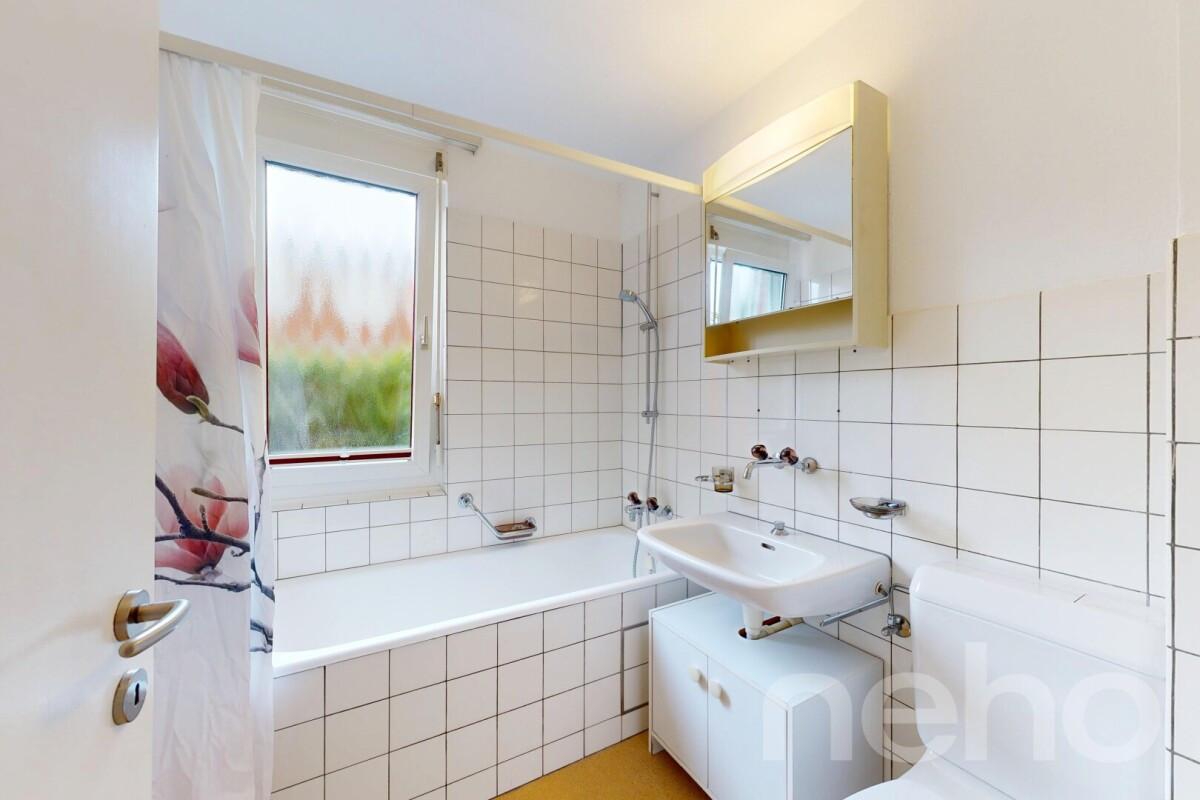 Die Küche, welche 1980 erneuert wurde, ist funktional eingerichtet und bietet eine solide Basis für eine künftige Modernisierung nach eigenen Vorstellungen. Das kompakte Badezimmer erfüllt seinen Zweck und lässt sich bei Bedarf an heutige Bedürfnisse anpassen. Die Fenster wurden bereits vor rund 13 Jahren ersetzt und steigern Wohnkomfort sowie Energieeffizienz.