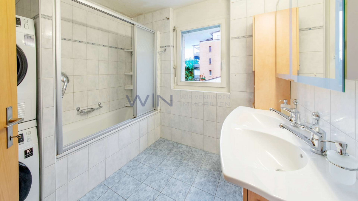 Die lichtdurchflutete Wohnung bietet alles, was das Herz begehrt: eine moderne Einbauküche, eine grosse Terrasse zum Verweilen, eine gepflegte Liegewiese sowie ein eigenes Kellerabteil. Der Zustand ist ausgezeichnet, einfach einziehen und wohlfühlen.