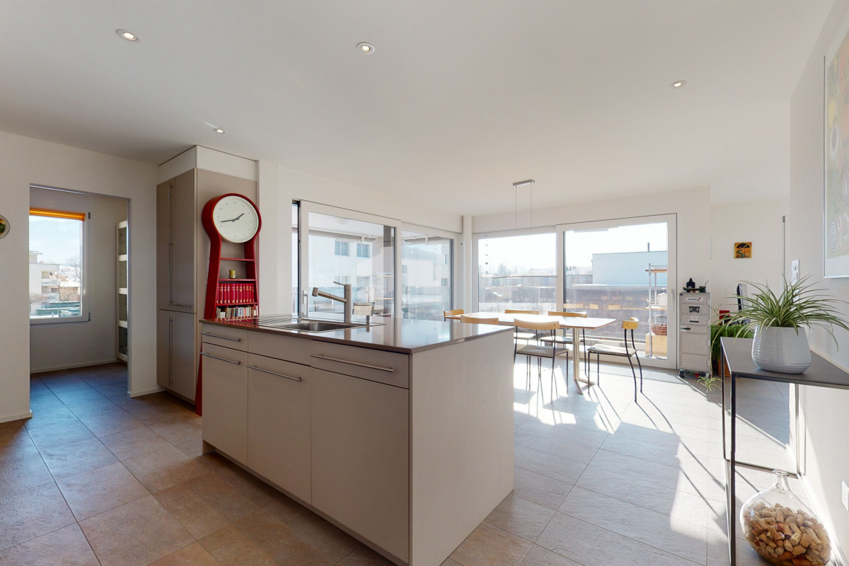 Situé dans un petit immeuble dans un quartier disposant de beaux espaces verts, cet appartement de 4.5 pièces profite d'une situation privilégiée. L'immeuble est bien équipé et est chauffé à distance, un système économique et intéressant. Bien entretenu, cet appartement offre tout le confort attendu et de belles surfaces lumineuses ainsi qu'un beau balcon attenant à la salle à manger. À visiter !