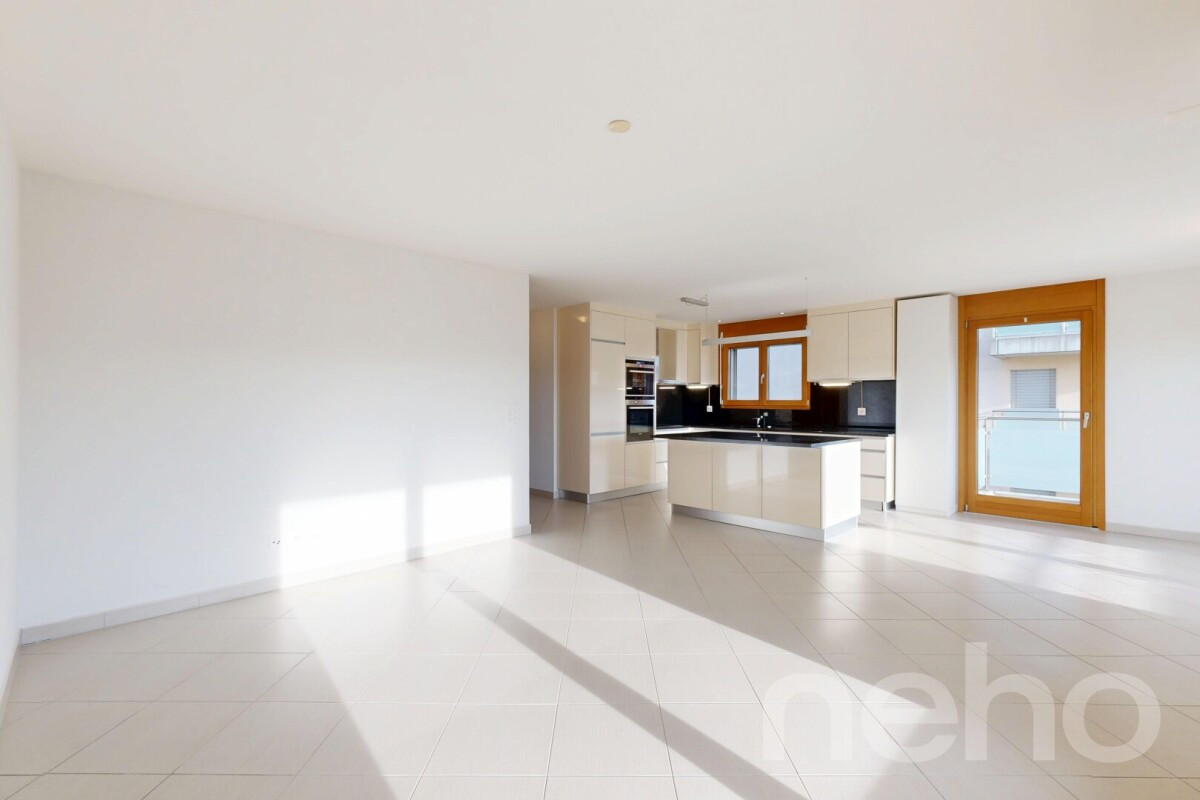 À Payerne ? Appartement 3.5 pièces moderne avec balconDans une résidence construite en 2018, cet appartement de 3.5 pièces, en parfait état, offre un cadre de vie contemporain et lumineux au c?ur d'un environnement paisible. Situé dans un immeuble récent, il séduit par sa disposition fonctionnelle et sa luminosité.L'espace de vie comprend un grand salon/salle à manger de plus de 23 m² prolongé...