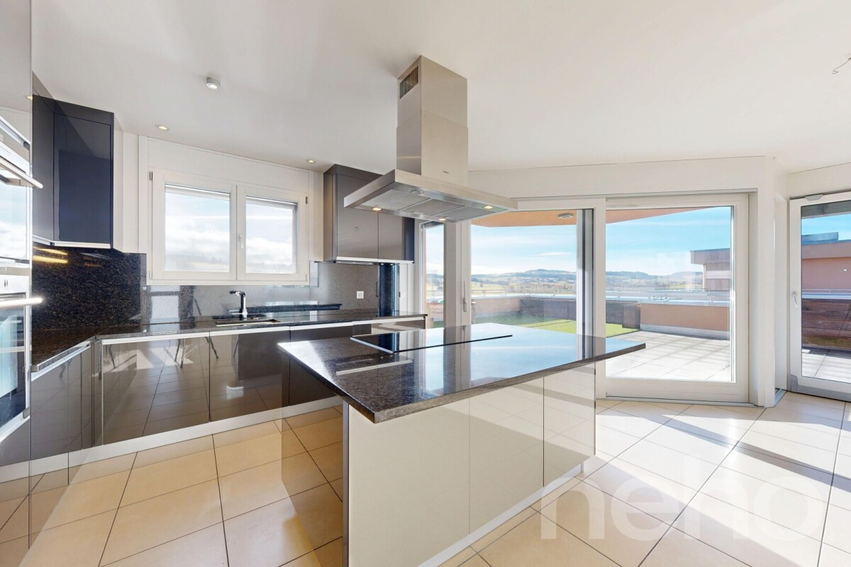 Rare! 4.5 pièces lumineux et sa terrasse avec vue dégagée Vous cherchez un lieu de vie idéal à la campagne? Ce bel appartement moderne est prêt à vous accueillir dans un cadre exceptionnel. Ce 4.5 pièces très bien exposé au sein d'une  petite PPE de 6 appartements dispose d'une immense terrasse offrant une vue dégagée d'où vous pourrez admirer de magnifiques couchers de...