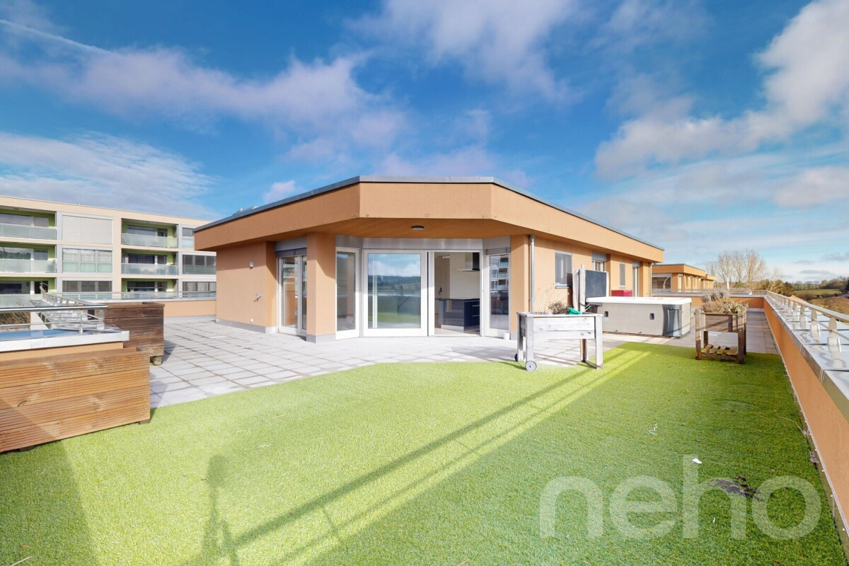Magnifique appartement sous les combles de 5.5 piècesAttique exceptionnel de 160 m² situé dans un quartier calme et familial. Il bénéficie d'une belle exposition sud-ouest, d'une luminosité optimale et d'une vue dégagée sur la campagne environnante. Entrée dégagée avec vestiaire, un spacieux séjour avec cuisine ouverte aux finitions nobles, quatre chambres dont une avec dressing, deux salles...