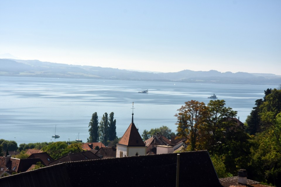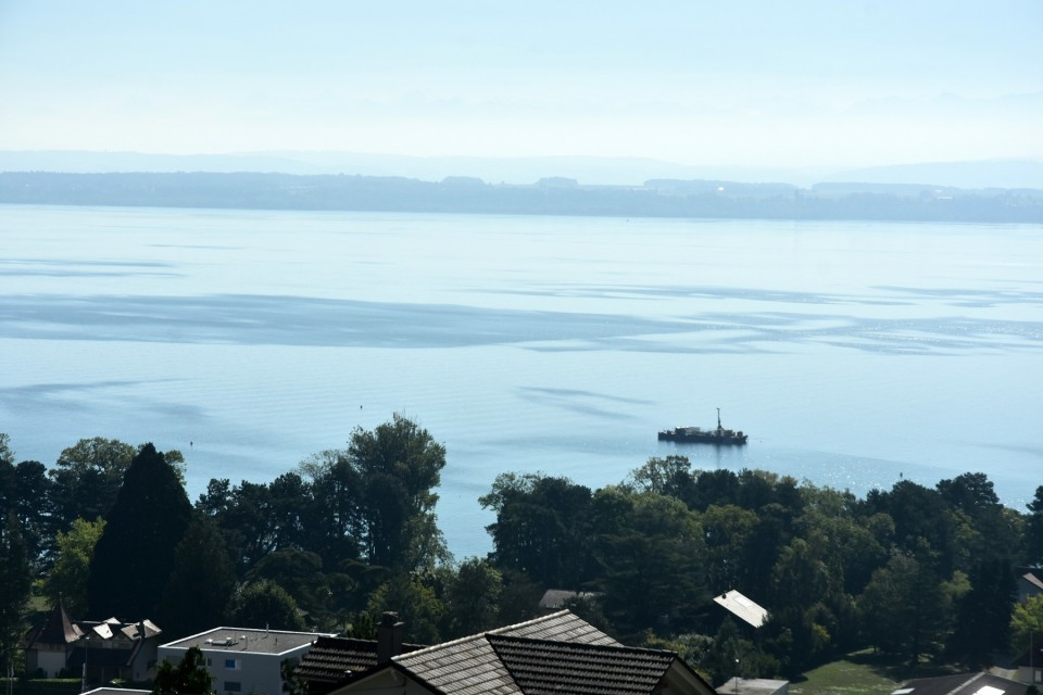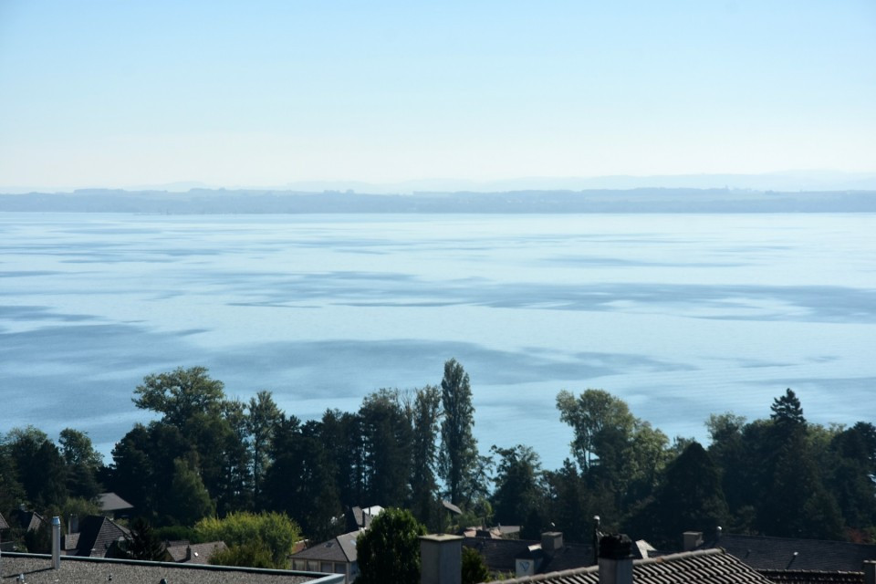Une magnifique vue sur le lac de Neuchâtel dans toute sa longueur,et Les Alpes situé plein sud.