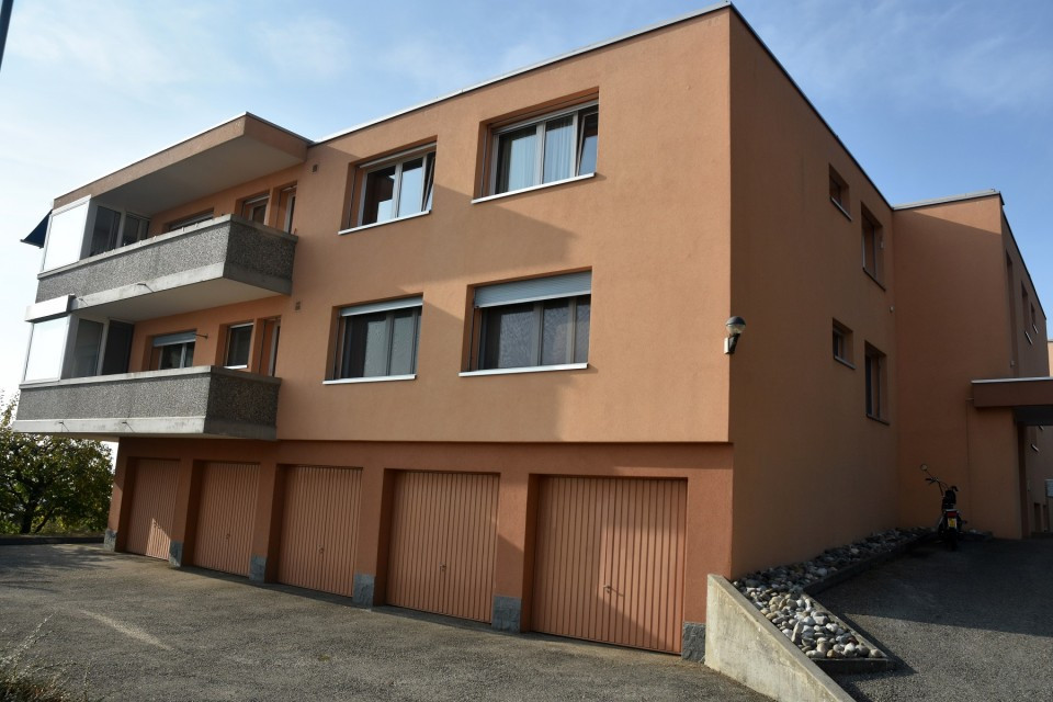 Un garage individuel de 16 m2 accessible de l'intérieur du bâtiment et une place de parc à l'extérieur.