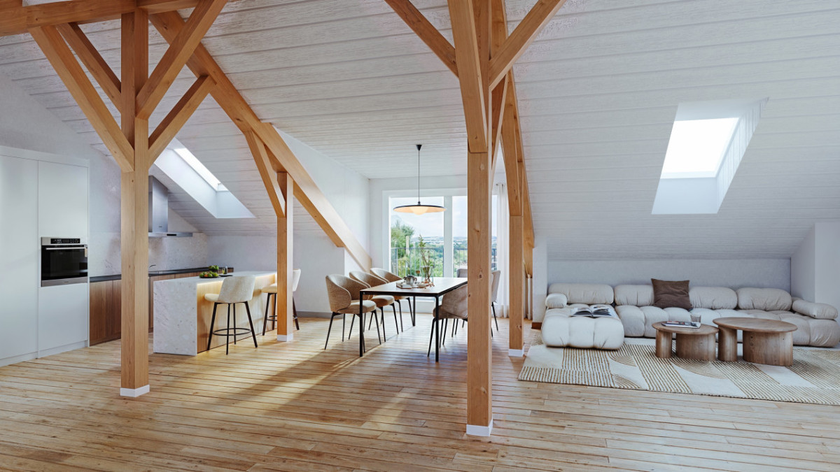 - Un séjour/cuisine de 52 m², lumineux et convivial.