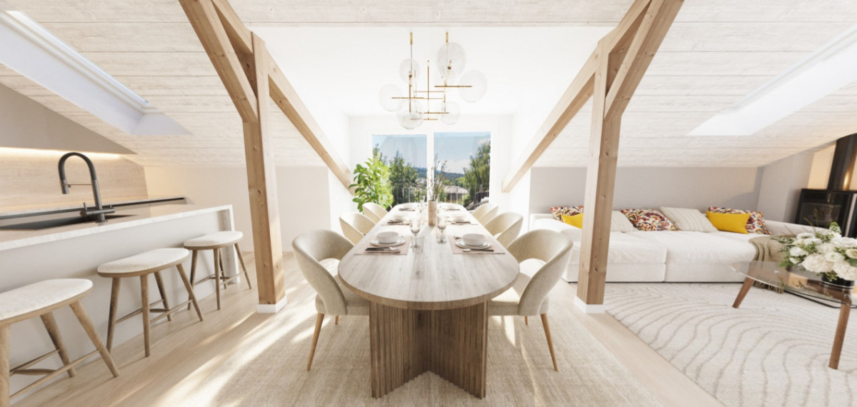 - Un séjour/cuisine de 52 m², lumineux et convivial.