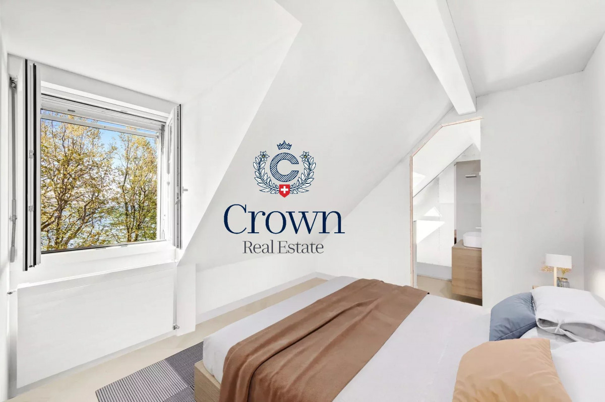 At the heart of a human-scale residence with a very private garden and swimming pool, this penthouse overlooking the lake offers 85 m2 of living space, comprising a bedroom and an office that can be used as a second bedroom, and 2 bathrooms. The living area is spacious. The apartment was partly renovated in 2024, and the choice of parquet flooring, kitchen and bathrooms is up to the tenant.