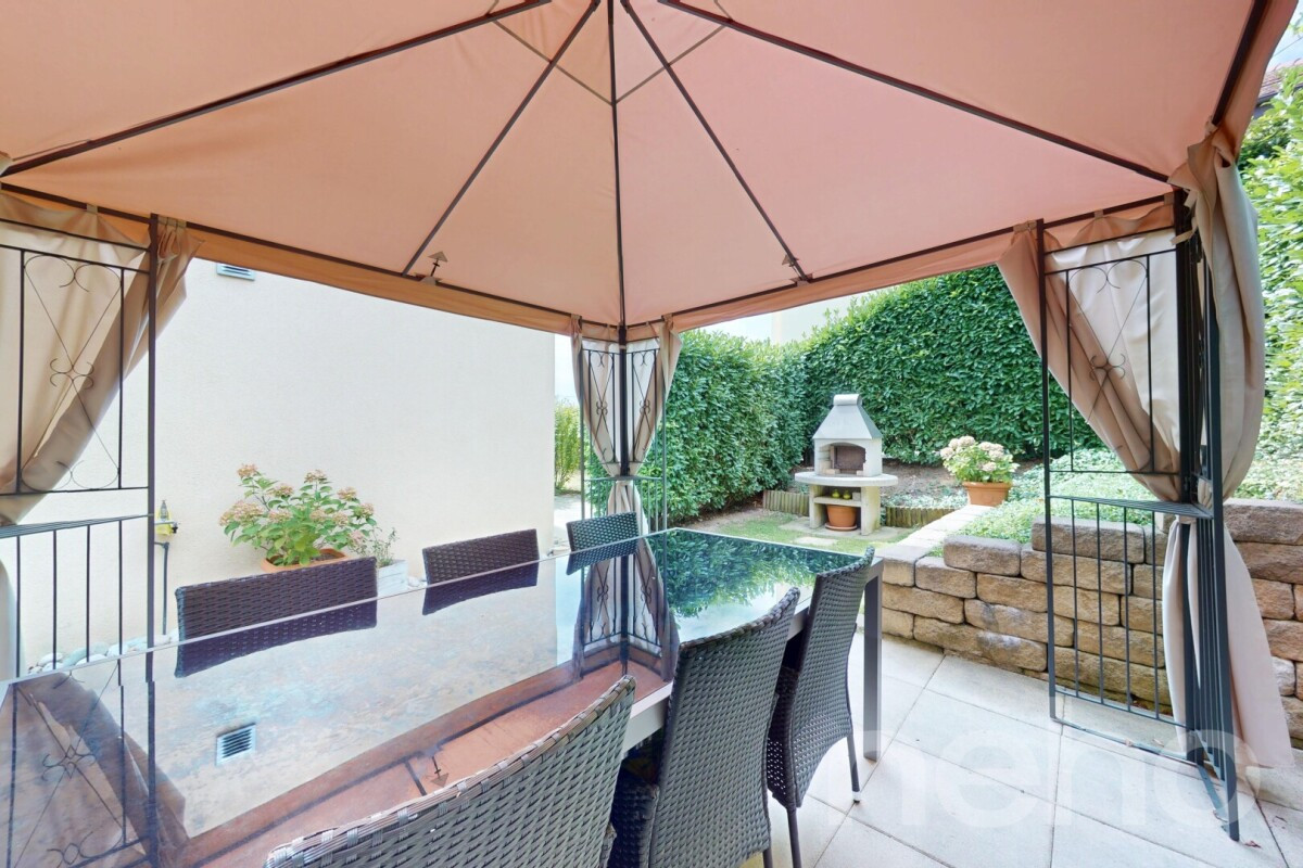 Au pied de l'immeuble, vous profiterez également d'une terrasse et d'un petit jardin équipé d'un barbecue.
