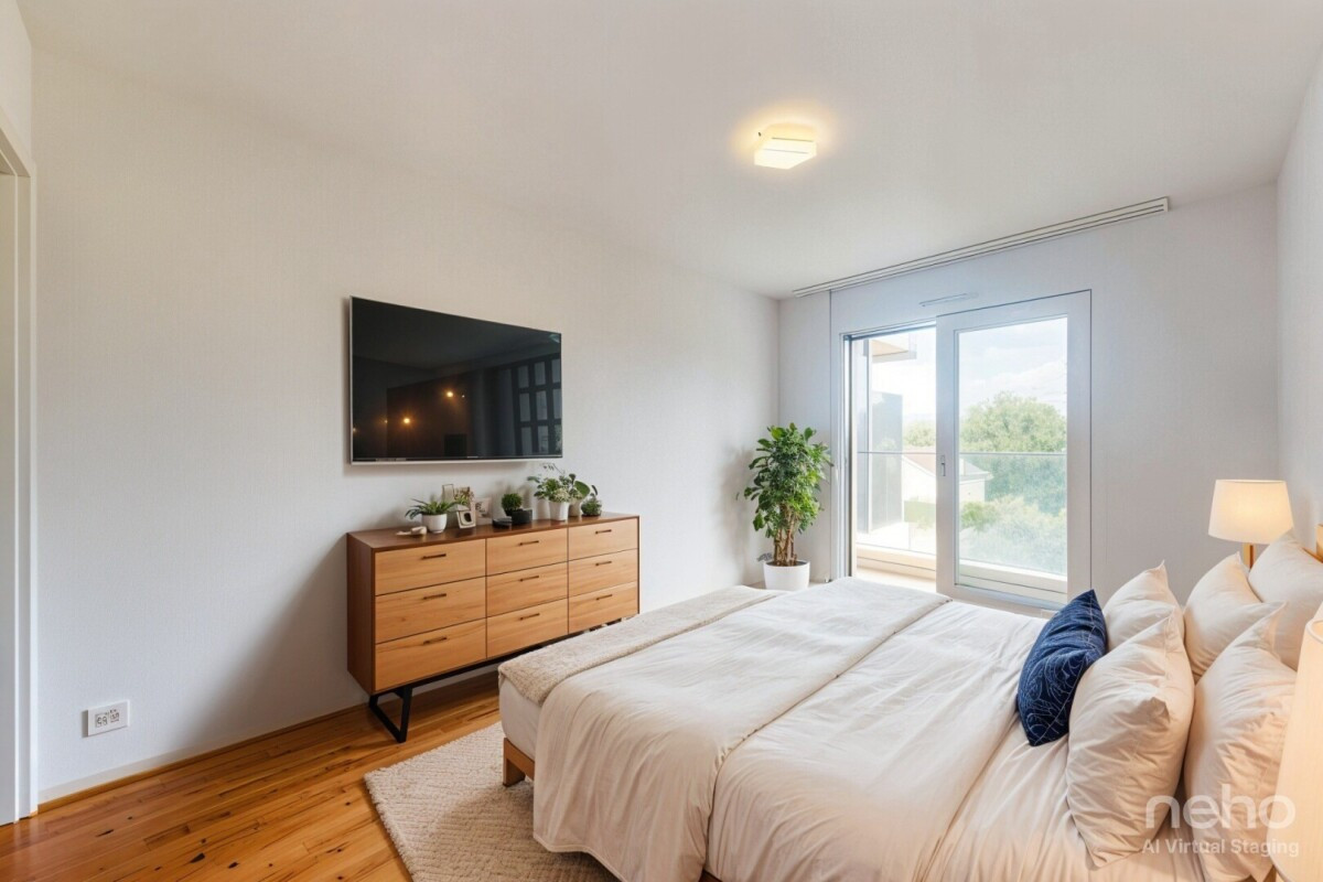 Der Schlafbereich besteht aus zwei großzügig geschnittenen Zimmern, die Ruhe und Privatsphäre bieten. Zwei Badezimmer, eines davon en suite mit Badewanne, runden das Raumangebot ab und sorgen für hohen Wohnkomfort im Alltag.