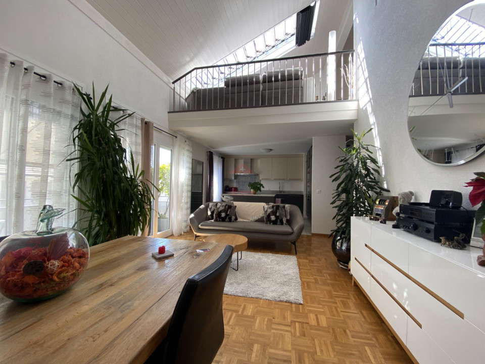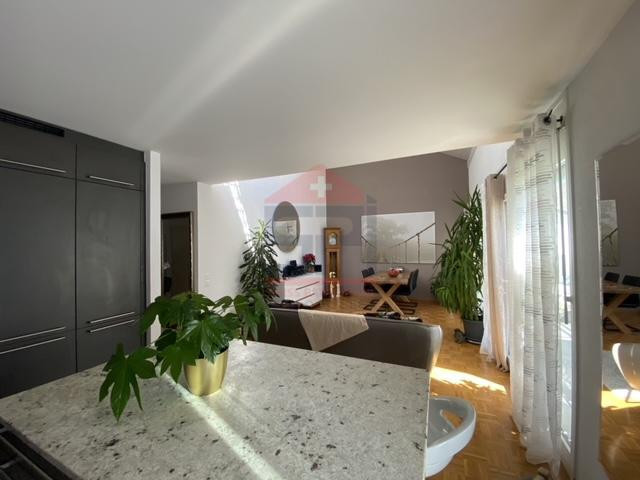 Swiss Patrimoine Immobilier presents to you exclusively this magnificent and bright penthouse duplex with 6 rooms located in the town of Satigny close to schools and the train station. Built in 2010 in a building without elevator, this beautiful 191m2 EPP apartment benefits from beautiful volumes and a beautiful 12m2 balcony.