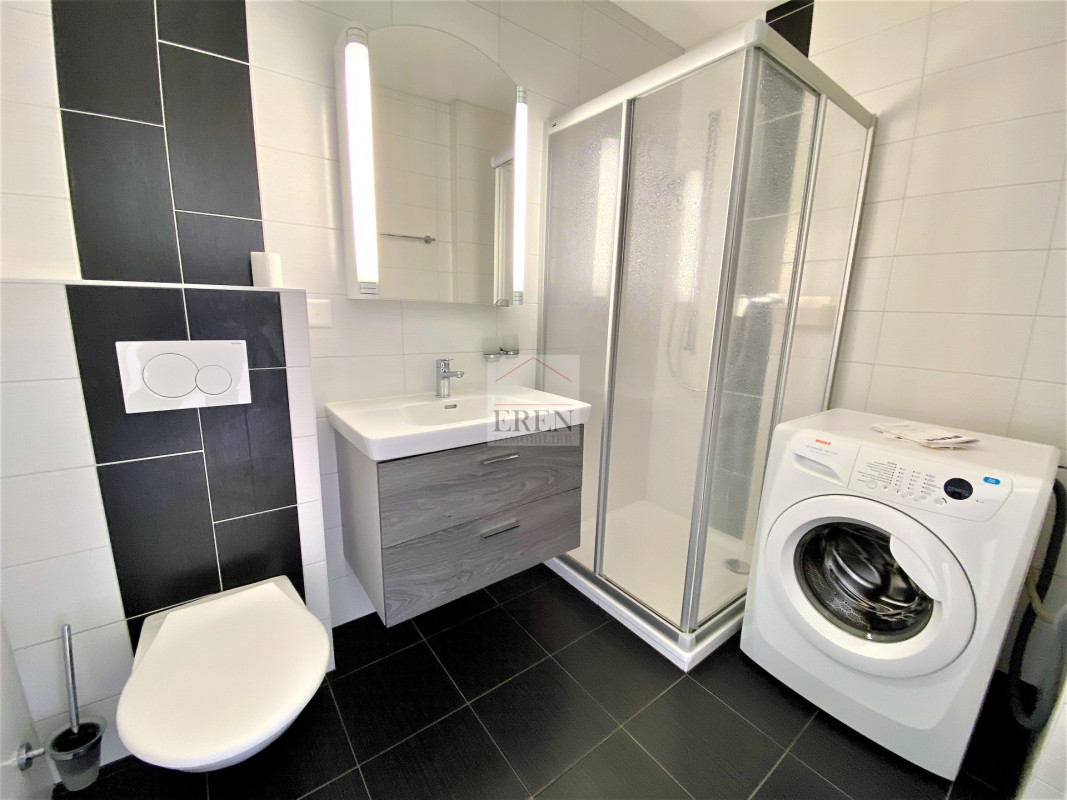 • 1 salle de bains avec douche, wc, lavabo et colonne de lavage
