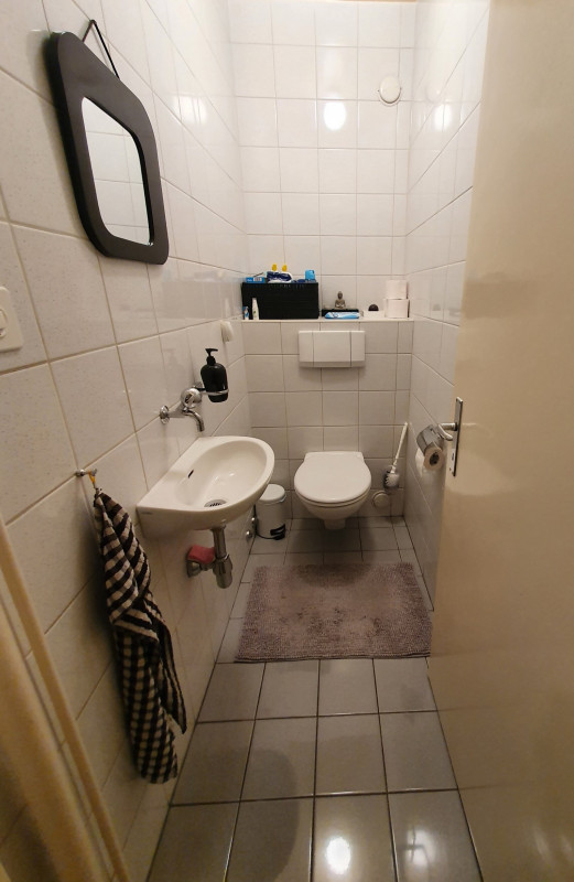 Ce bien est situé au 2ème étage d'un immeuble de 5 étages construit dans les années 1960. Il offre une belle surface brute d'environ 95m2 complétée par un balcon. La surface de vente est de ~97.5m2 (surface brute + 1/2 surface du balcon). L'appartement a été rénové il y a quelques années et est agencé de la manière suivante :