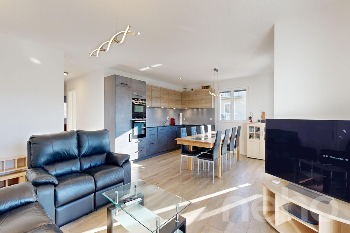 Construit en 2021, ce magnifique appartement contemporain séduit par ses volumes généreux, sa luminosité naturelle et son état irréprochable, proche du neuf. Pensé pour offrir un cadre de vie moderne et confortable, il allie prestations de qualité et atmosphère élégante.Les espaces de vie, spacieux et harmonieusement agencés, bénéficient d'une belle lumière tout au long de la journée. Le séjour s'ouvre sur un grand balcon habitable et couvert de 17.5 m², véritable prolongement de l'espace intérieur, idéal pour profiter de moments de détente en toute saison.Le confort est assuré par un chauffage géothermique au sol, à la fois performant, écologique et agréable au quotidien. L'appartement dispose également de la fibre optique pour une connexion rapide, d'un vidéophone garantissant sécurité et praticité, ainsi que de stores électriques facilitant la gestion de la luminosité.Une grande cave privative de 15.4 m² complète ce bien et offre un espace de rangement particulièrement appréciable. Côté stationnement, une place extérieure ainsi qu'une grande place en garage souterrain viennent parfaire l'ensemble.Un appartement moderne, élégant et parfaitement entretenu, idéal pour celles et ceux qui recherchent un bien récent alliant confort, fonctionnalité et qualité de vie.