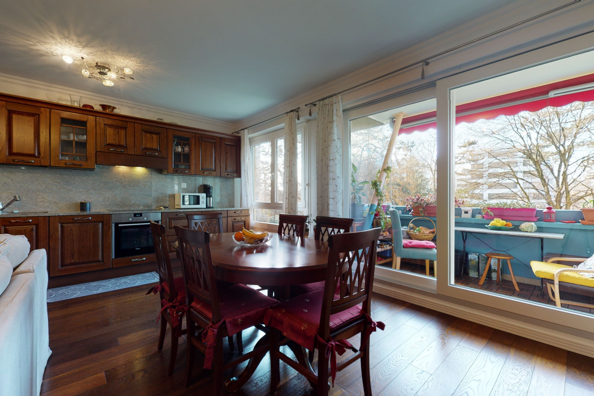 Appartement traversant proche de toutes les commodités de Thônex avec balcon de 111 m² PPE face au parc privatif de la résidence et de ses grands arbres. Constitué d'un grand séjour attenant à une cuisine ouverte rénovée et de 3 chambres à coucher ainsi qu'une salle de bain également rénovée en 2013. Un grand box fermé pour 2 véhicules et une cave.