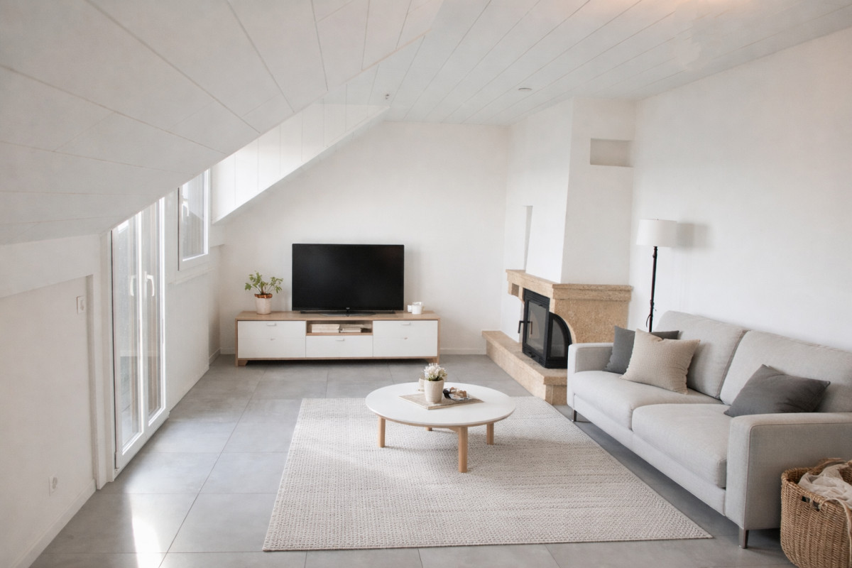 Grâce à sa position et à ses ouvertures, le logement profite d’un bon ensoleillement. La pièce de vie comprend un séjour spacieux avec cheminée, avec accès à un balcon orienté sud-ouest, offrant un espace extérieur appréciable.