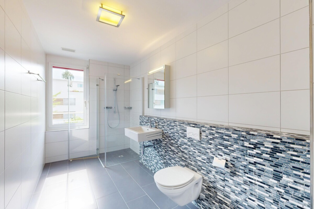 Entdecken Sie diese lichtdurchflutete, moderne Wohnung mit einer grosszügigen Wohnfläche von 157 m². Der hochwertige Ausbau und der gute Erhaltungszustand versprechen ein Wohnerlebnis auf hohem Niveau. Das Mehrfamilienhaus wurde in Minergiebauweise erstellt und verfügt über eine Erdsonde und Photovoltaik, Sonnenkollektoren und ist mit einem Lift ausgestattet. Die Wohnung bietet vier Schlafzimmer und zwei Badezimmer mit einer Dusche und einer Jacuzzi-Badewanne, eine offene Küche mit Rüstinsel, sowie eine gedeckte Loggia mit einer Fläche von 17 m². Der Eingangsbereich ist ausgestattet mit Einbauschränken.Die Wohnung liegt im zweiten Stockwerk und ist nach Nordwesten ausgerichtet, was für eine angenehme Belichtung sorgt und einen schönen Ausblick garantiert. Zusätzliche Annehmlichkeiten wie ein grosser, separater Keller und eine separate Waschküche runden das Angebot ab und machen das Wohnen hier besonders komfortabel. Zur Wohnung gehören zwei Einstellplätze in der hauseigenen Tiefgarage, die für je CHF 38 000 dazugekauft werden müssen.