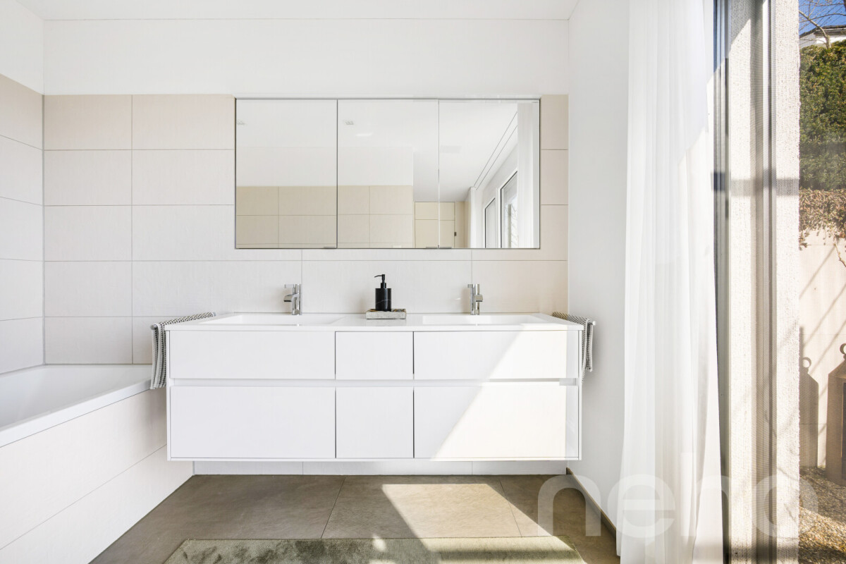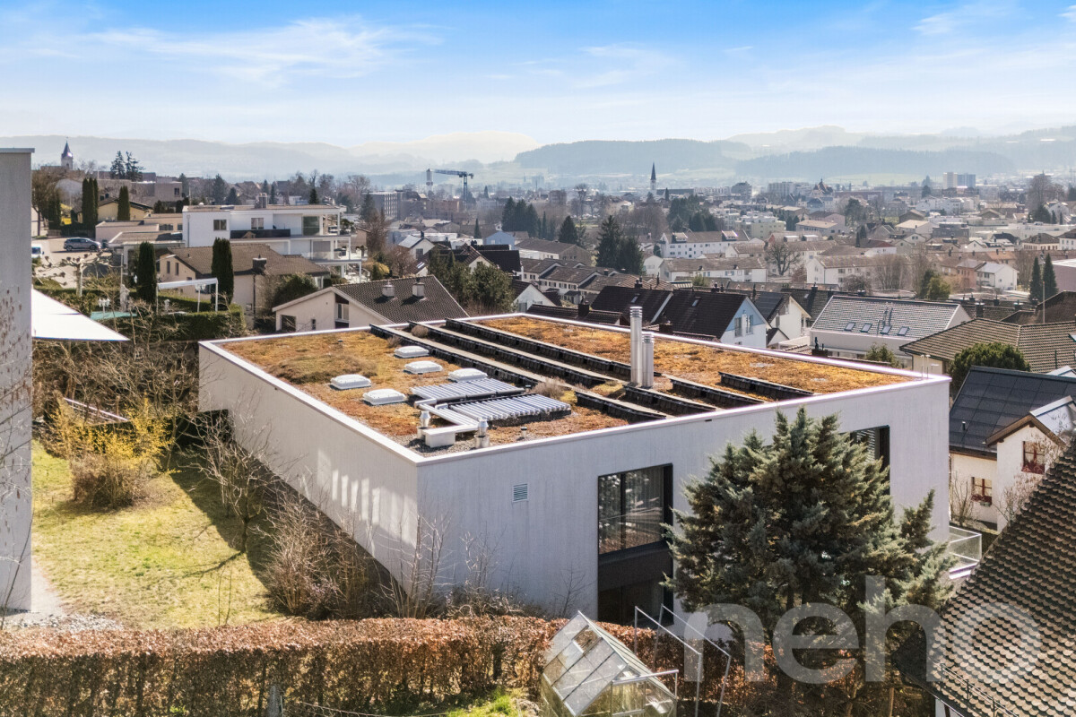 Raumangebot und AusstattungDie Wohnung überzeugt durch einen grosszügigen Grundriss mit optimaler Raumaufteilung. Der offene Wohn- und Essbereich bildet das Herzstück der Wohnung und bietet dank raumhoher Fenster und Hebeschiebetüren eine nahtlose Verbindung zur weitläufigen Terrasse.Das Master-Schlafzimmer verfügt über eine eigene Ankleide sowie ein angrenzendes Badezimmer. Drei weitere Zimmer eignen sich ideal als Kinder-, Gäste- oder Arbeitszimmer. Zusätzlich steht ein weiteres Badezimmer mit abtrennbarer Dusche zur Verfügung.Die separate Räumlichkeit, eine exklusiv ausgebaute Wellnessoase mit Sauna, Dusche, WC und Lavabo erweitert das Wohnangebot und schafft einen privaten Rückzugsort für Entspannung. Ergänzt wird dieser Bereich durch einen Weinkeller und einen weiteren vielseitig nutzbaren Raum.Bauqualität und TechnikDie Stadtvillen wurden nach Minergie-Standard erstellt und bieten eine energieeffiziente sowie komfortable Bauweise mit hervorragenden Schall- und Wärmedämmwerten.Ausstattungsmerkmale: