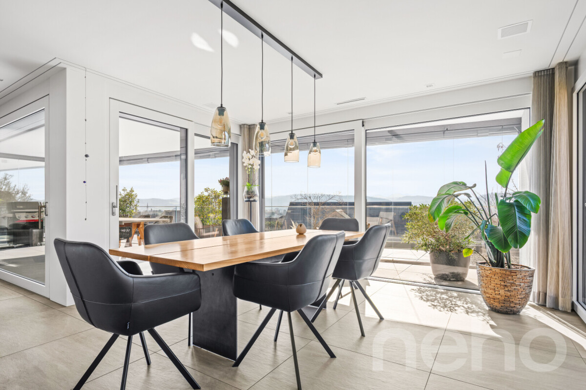 189 m2 grosse Terrassenwohnung mit Garten im idyllischen RebhangEntdecken Sie dieses stilvolle Zuhause, das durch seinen sehr gepflegten Garten mit einem malerischen Gartenteich und einer grosszügige Terrasse mit einer Fläche von 39 m2 überzeugt. Eingebettet in den idyllischen Rebhang, wird ein atemberaubender Weitblick und eine sonnige Südlage geboten.Mit einer grosszügigen Wohnfläche von 189...