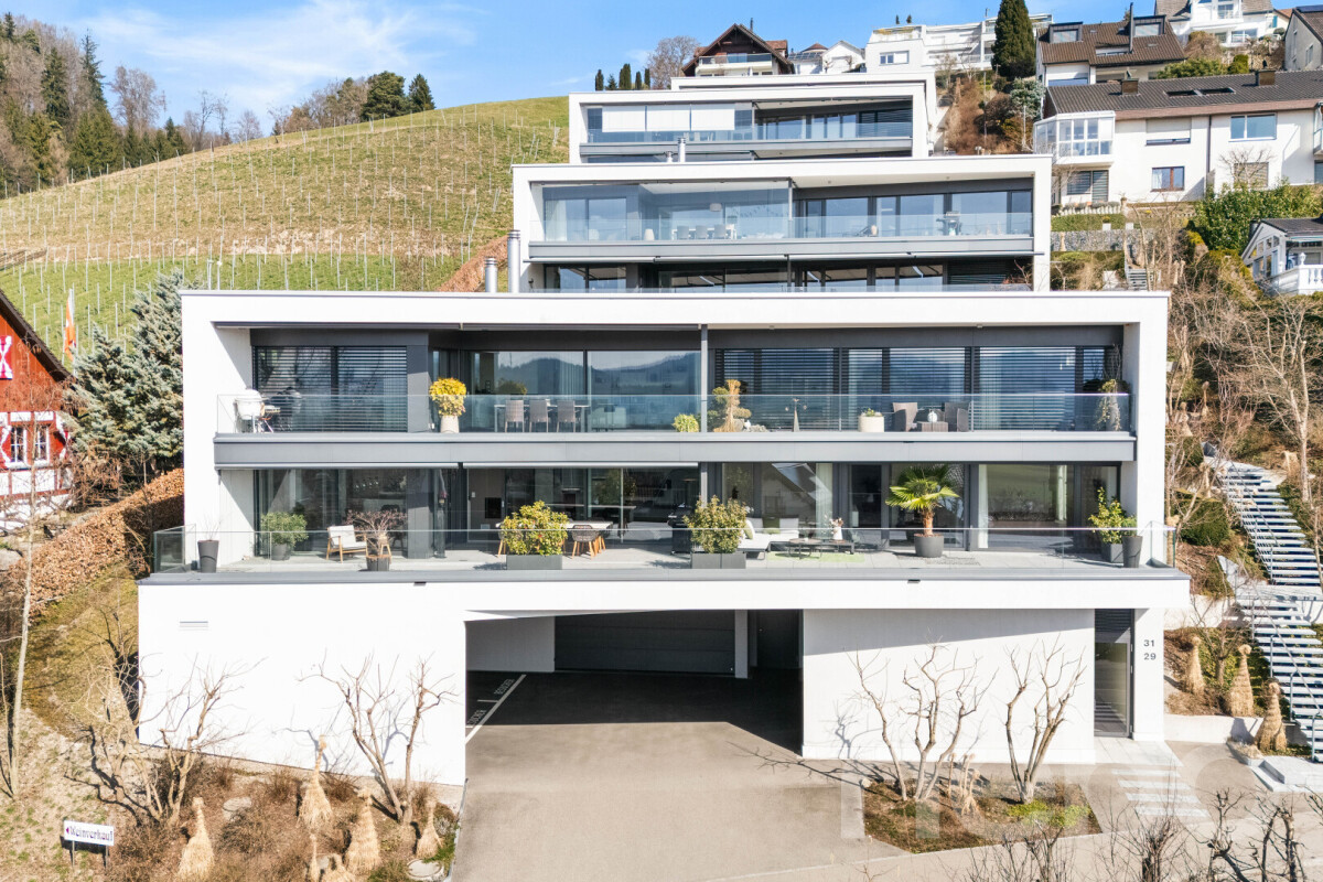 Diese aussergewöhnliche 5.5-Zimmer-Terrassenwohnung befindet sich an der begehrten Höhenstrasse - einer der exklusivsten Wohnlagen von Wil. Eingebettet am sonnigen Südhang des Wilbergs geniessen Sie hier Ruhe, Privatsphäre und eine eindrucksvolle Fernsicht über die Stadt Wil bis zum Voralpenpanorama mit Alpstein und Churfirsten.Die Terrassenwohnung ist Teil der hochwertigen Stadtvillen Wilberg, welche nach modernem Architekturkonzept erstellt wurden und sich harmonisch in die bestehende Umgebung einfügen. Grosszügige Fensterflächen, eine durchdachte Raumgestaltung sowie die privilegierte Ausrichtung nach Süd-West sorgen für lichtdurchflutete Räume und ein einzigartiges Wohngefühl.Auf 252 m2 Bruttowohnfläche bietet diese exklusive Terrassenwohnung grosszügigen Wohnkomfort auf höchstem Niveau. Ergänzt wird das Raumangebot durch eine private Wellnessoase und Nebenräume mit zusätzlichen 94 m2. Highlights der Wohnung