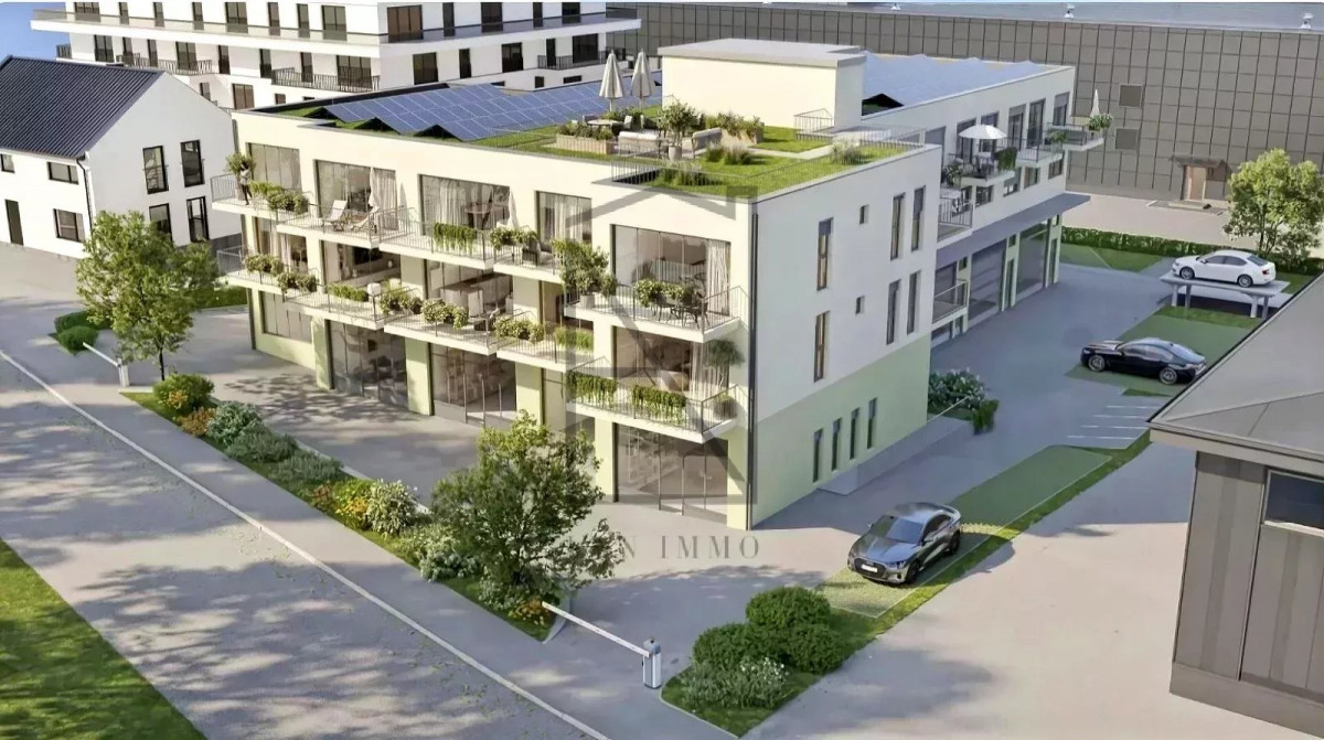 The building features an elevator and a large 90 m² roof terrace, with a relaxation area and private lawn for co-owners. Possibility of acquiring an outdoor parking space for CHF 25,000.00. Delivery scheduled for end 2025 - Purchase on a forward sale basis with an initial down payment of 20%.