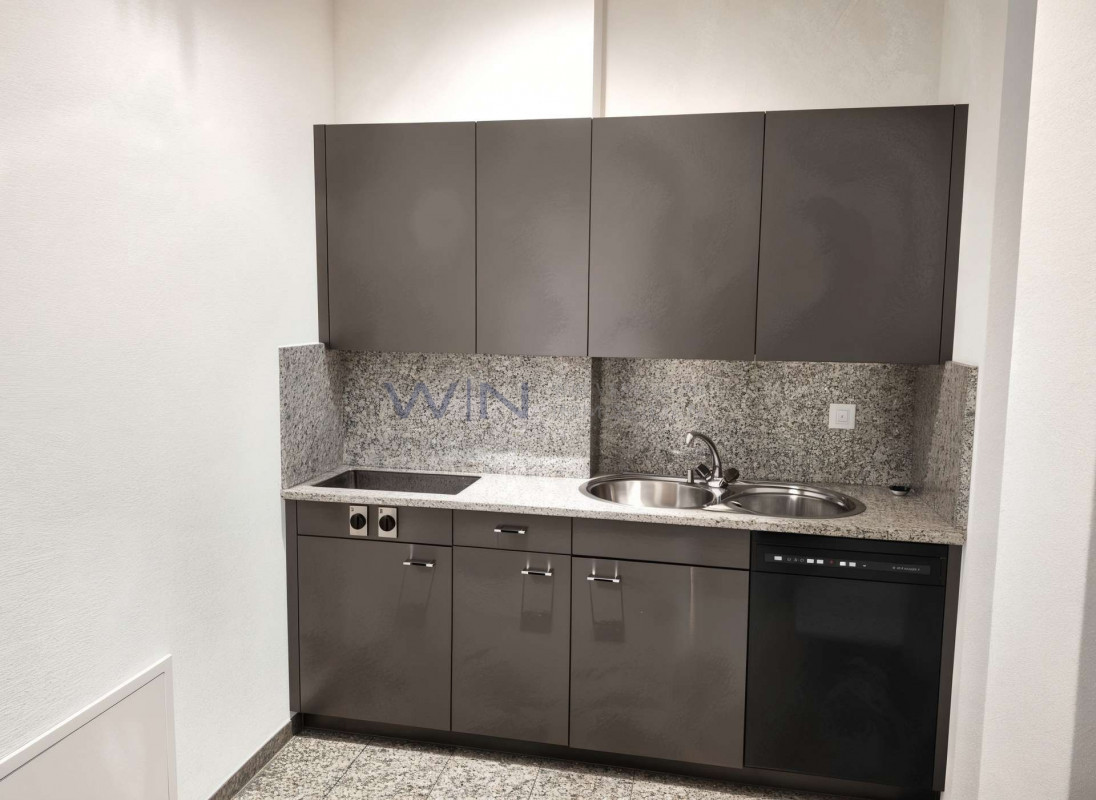 Eine voll ausgestattete Gewerbeimmobilie an ruhiger Lage im Erdgeschoss eines modernen Gebäudes. Sie eignet sich als Büro oder Praxis. Es sind 7 ausgebaute Räume mit Kabelkanal und Server inhouse.