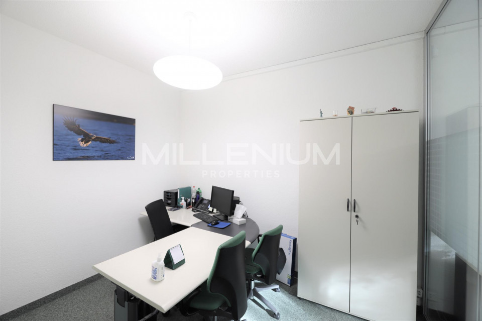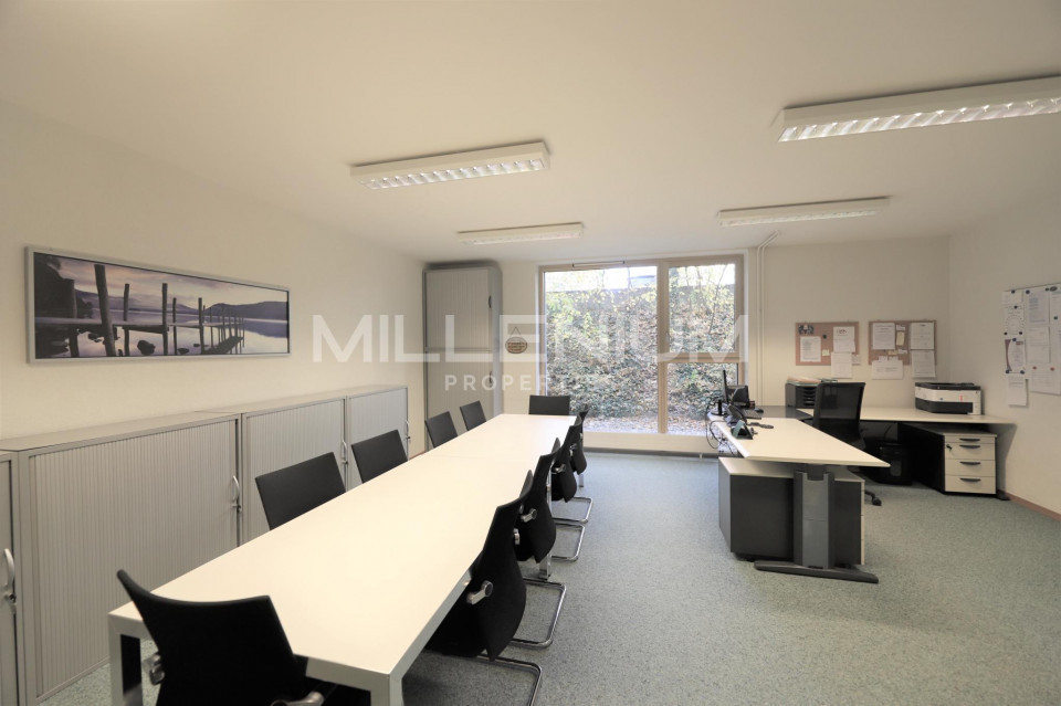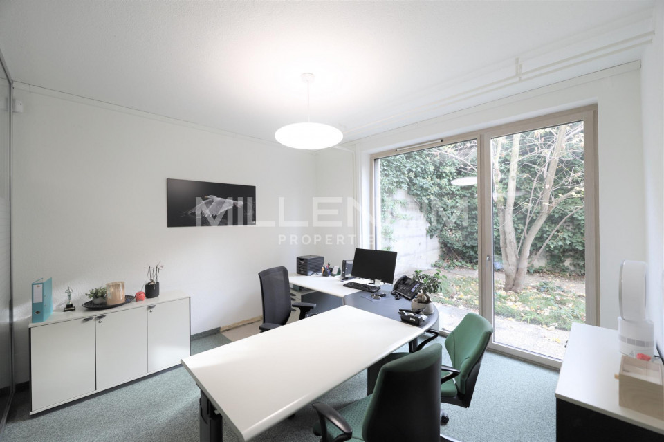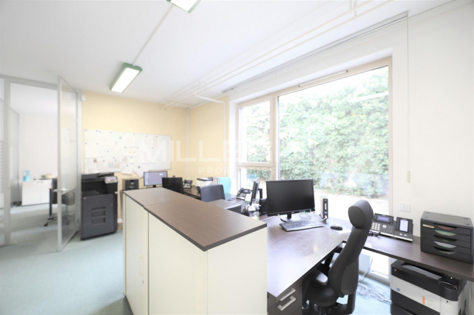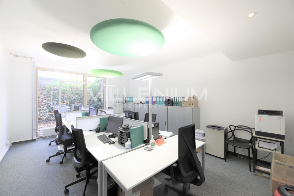 Situé dans une impasse sans nuisance, dans un petit immeuble récent en copropriété, proche de toutes commodités et des transports publics, ce beau bureau moderne offre 150 m2 de surface de bureau composé d'un accueil, de 4 bureaux cloisonnés dont un esapce en open space, d'une salle de réunion, de deux toilettes, d'une petite cuisine, d'un bureau d'archives et d'une salle technique. L'espace peut être divisé en deux avec chacun son entrée indépendante. Les bureaux profitent de grandes baies vitrée donnant sur un extérieur protégé et arboré.
