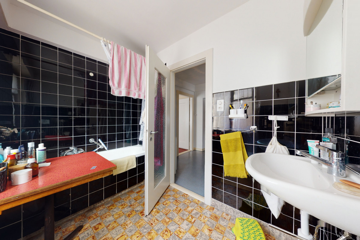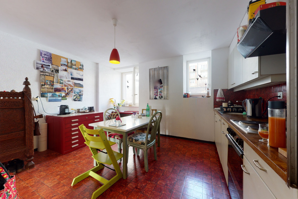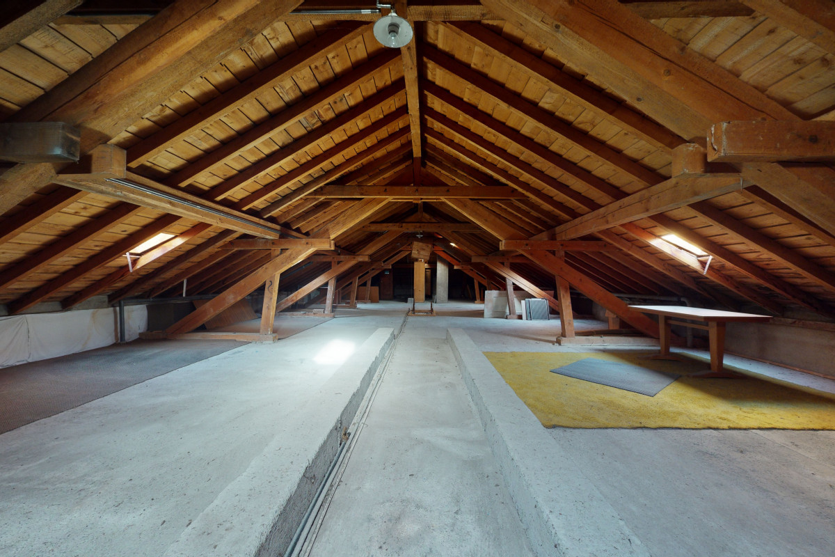 This former hotel offers enormous potential as its floor space and height can be increased. It can be converted into flats, lofts and/or offices. The ground floor consists of a reception, a professional kitchen, a large dining room with bar and a former bowling alley. The first floor consists of a beautiful 3.5 room flat. The rest of the 1st and 2nd floor consists of 15 hotel rooms, most of them with shower and washbasin and 3 sanitary groups.