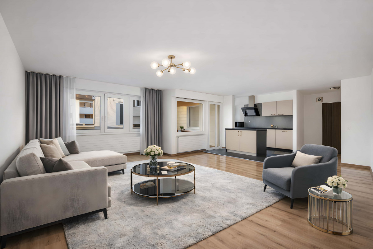 - Cuisine ouverte sur un grand séjour lumineux