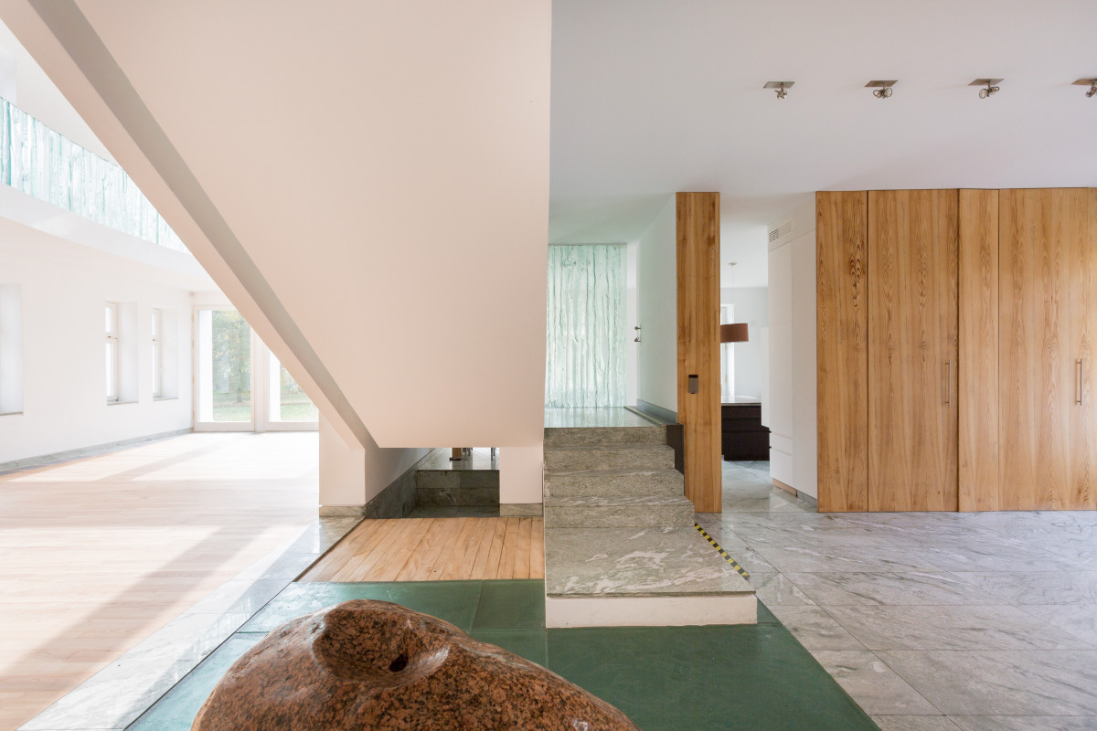 Des escaliers vous mène à l’étage inférieure ( Rez inférieure) où on peut trouver 4 chambres à coucher et une magnifique pièce de vie doté d'un puit de lumière et donnant sur le jardin avec coin bureau, espace yoga et séjour.
