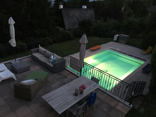 Au rez: d'une entrée, d'une grande et belle pièce de vie avec cheminée, d'une salle à manger lumineuse dans une véranda avec une vue imprenable sur le lac et les montagnes, d'une cuisine entièrement équipée, d'une chambre d'amis ou bureau et d'une salle de bain avec douche et WC.