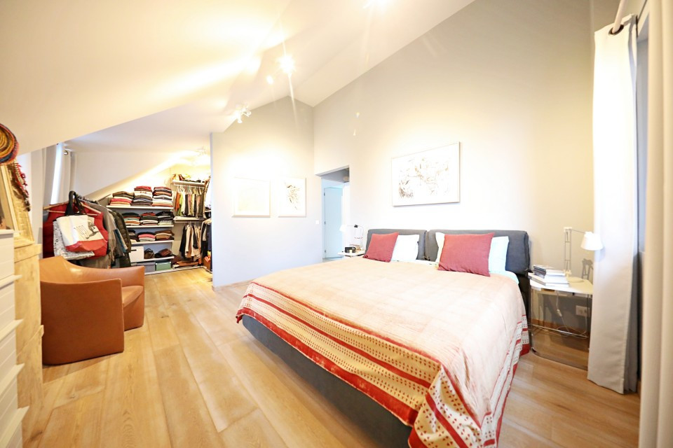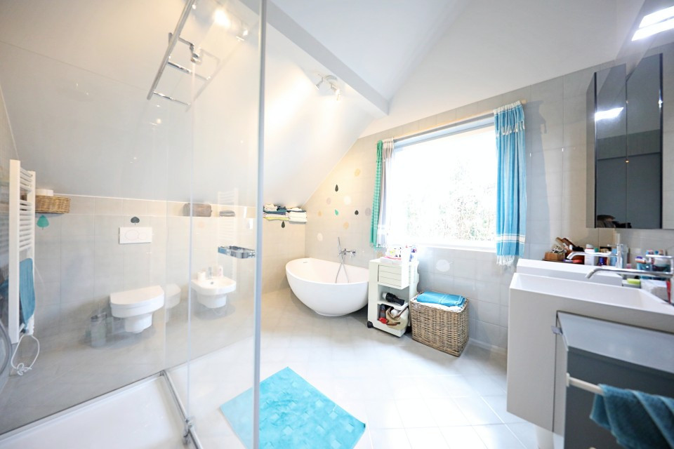 Au 1er étage : d'un hall de dégagement, d'une suite parentale avec son dressing et salle de bain attenante avec baignoire, douche et WC, de 2 chambres doubles et d'une salle de bain avec baignoire, WC et bidet.