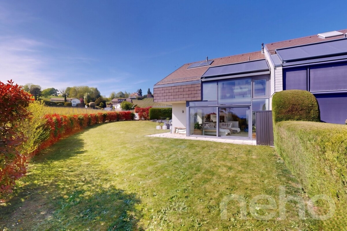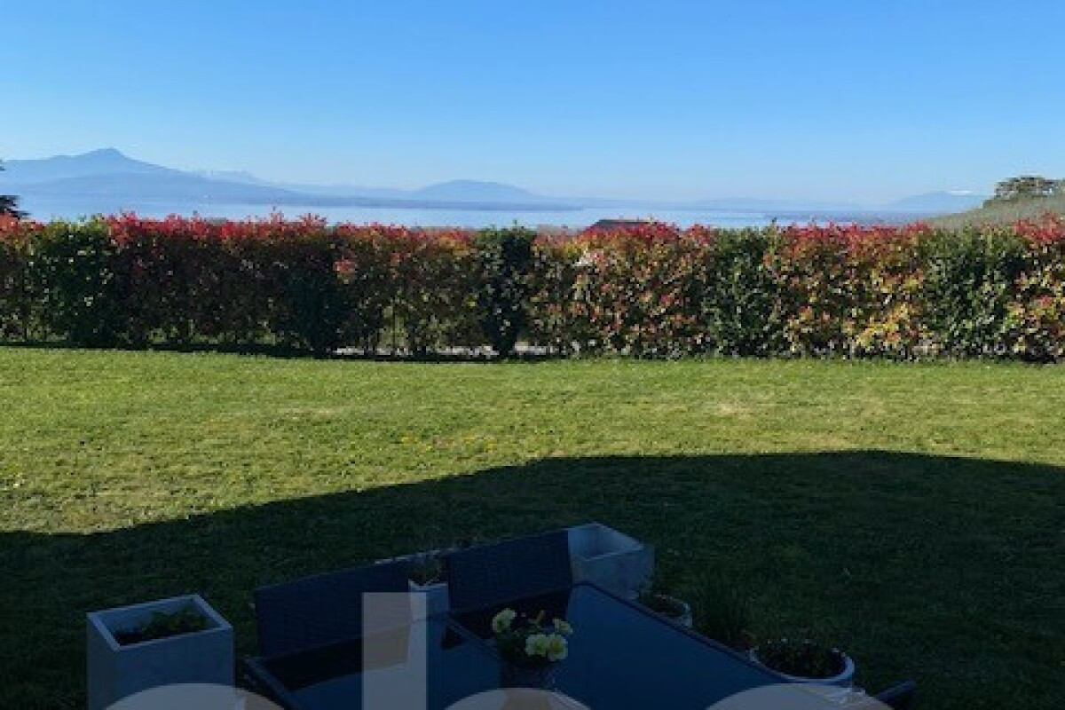 Magnifique maison avec jardin dans les résidences du GolfAu c?ur de la résidence du Golf, cette maison mitoyenne offre un cadre de vie rare : verdure, calme absolu et accès direct au lac et à sa plage. Le tout à 30 minutes de l'aéroport, à quelques minutes de Nyon et idéalement positionné entre Genève et Lausanne.Construite en 2000, elle séduit dès l'entrée par son séjour lumineux avec...