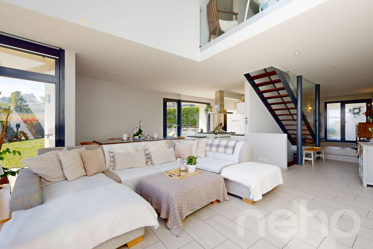 Villa HUF HAUS avec vue sur le Lac et les AlpesSituée dans un cadre naturel préservé, cette villa de 2008 signée HUF HAUS se distingue par ses lignes épurées et ses matériaux écologiques de haute qualité. Parfaitement entretenue, elle offre une transparence totale avec la nature grâce à sa structure emblématique alliant le bois et le verre.L'intérieur propose de vastes espaces ouverts...