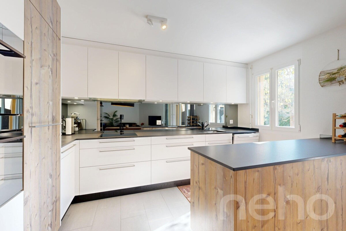 Splendide villa d'architecte avec magnifique jardin et vue sur la campCette splendide villa d'architecte est située dans un endroit calme et offre une belle vue sur la campagne et les Alpes. Très lumineuse et d'une conception bien étudiée, elle offre de beaux volumes. Le salon avec poêle suédois, le jardin avec terrasse et pergola, le sous-sol avec salle de loisirs, les hauts plafonds sont autant...
