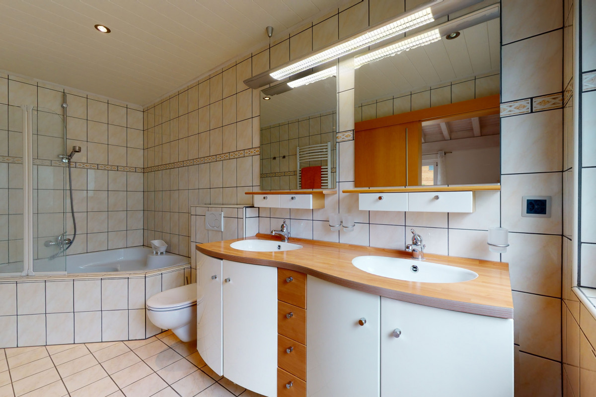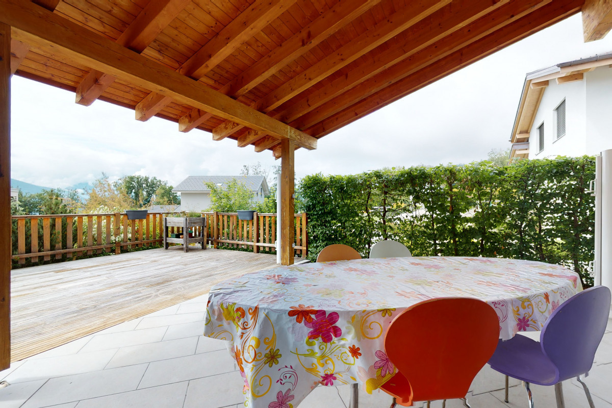 Belle maison moderne offrant des espaces généreux, qui a du potentiel. Elle est composée de 3 chambres à coucher dont 1 avec mezzanine et encore 1 bureau (soit 4 chambres au total), 2 salles d'eaux et un grand séjour avec cuisine ouverte qui donne sur la terrasse habitable. Idéal pour les familles, le grand jardin inclut un espace jeu.