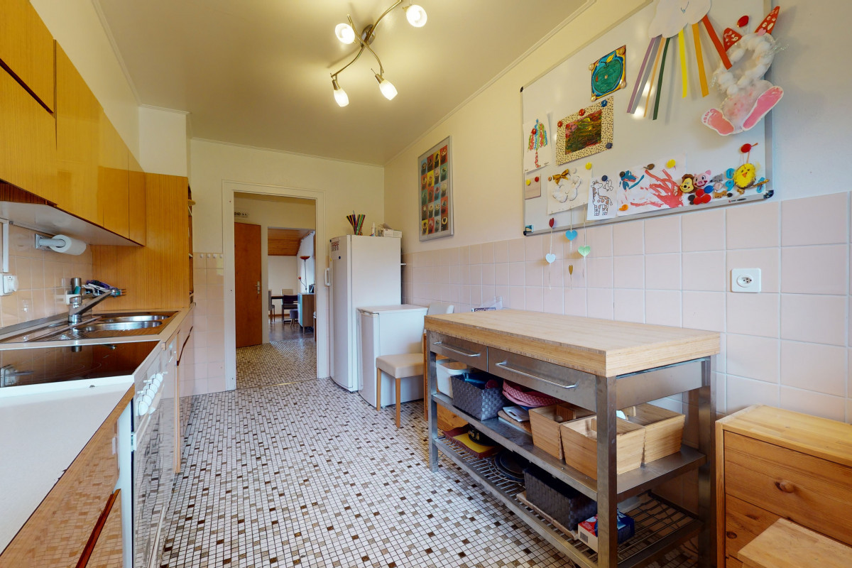 ETAGE: Logement de 4 chambres, bureau, cuisine, salon-salle à manger, balcon donnant sur la place de la Couronne.